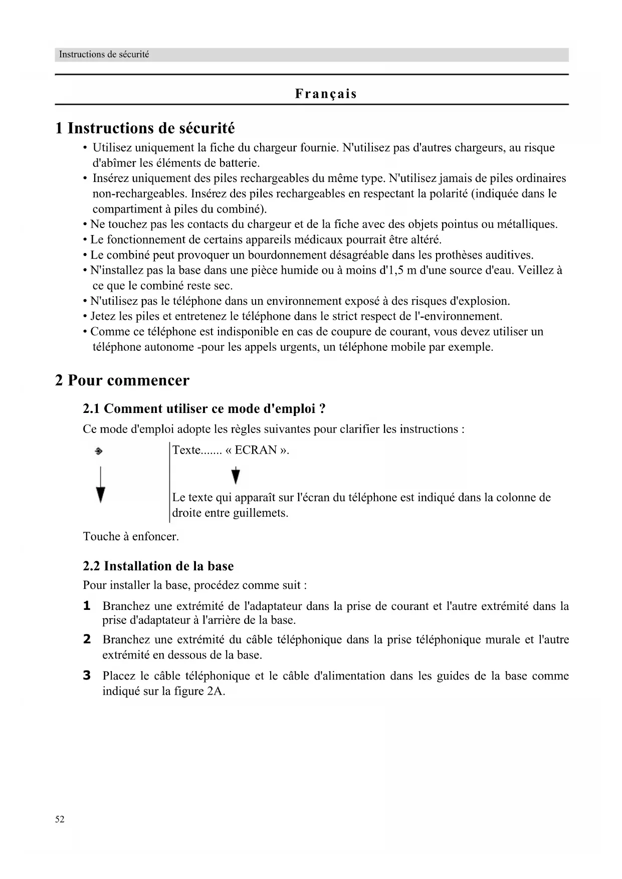 - Comme ce téléphone est indisponible en cas de coupure de courant, vous devez utiliser un téléphone autonome -pour les appels urgents, un téléphone mobile par exemple. 2 Pour commencer