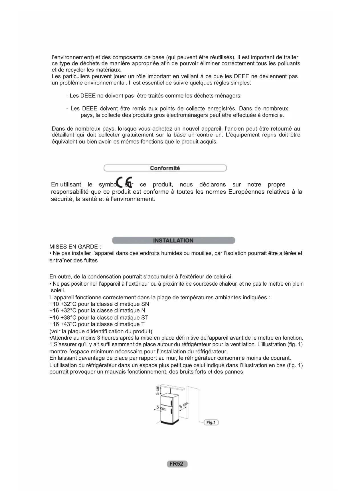 es ou mouillés, car l’isolation pourrait être altérée et entraîner des fuites FR52 l’envir