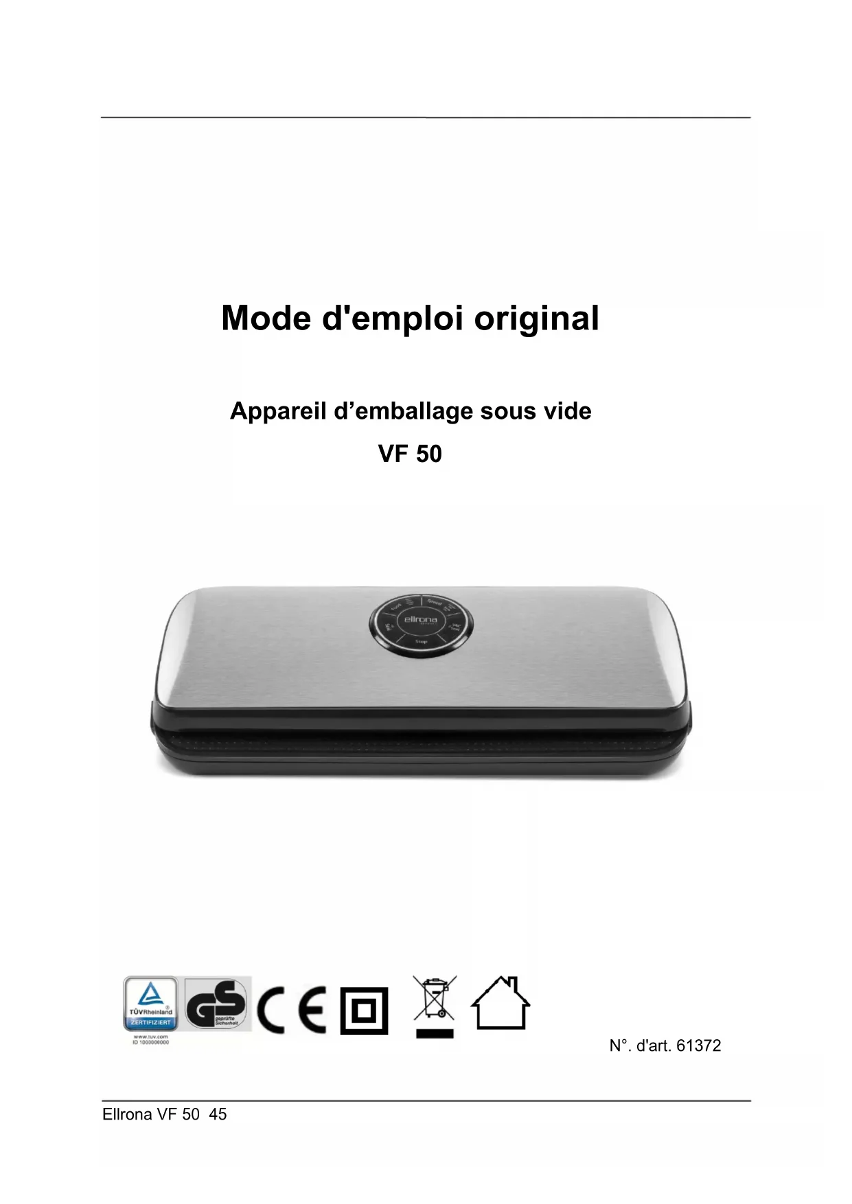 VF 50 - Appareils à emballage sous vide Ellrona - Notice d'utilisation et mode d'emploi gratuit