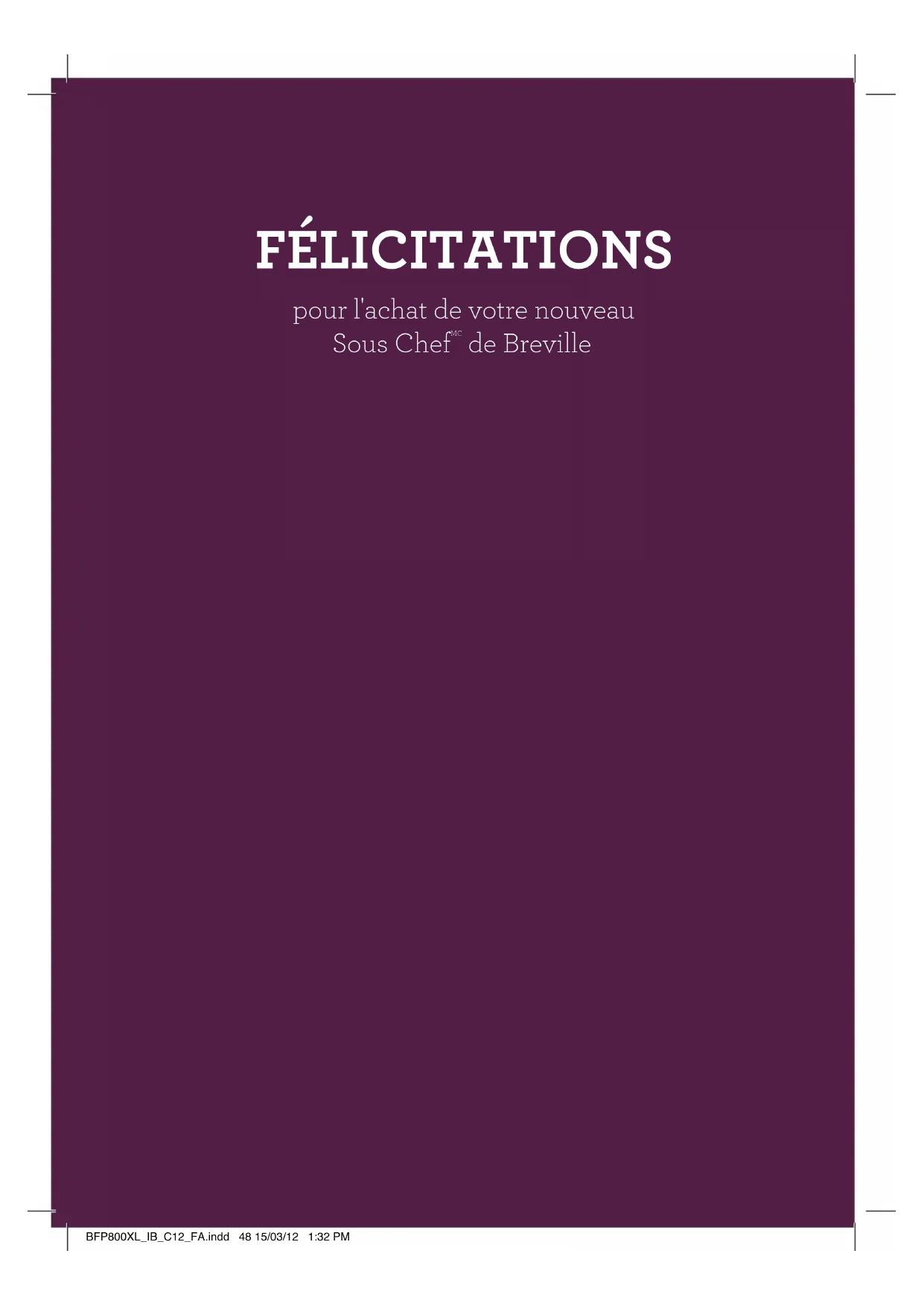 de Breville BFP800XL_IB_C12_FA.indd 48 15/03/12 1:32 PM49 TABLE dES MATIÈRES 50 Breville vous recommande la sécurité avant tout 53 Faites la connaissance de votre Sous Chef