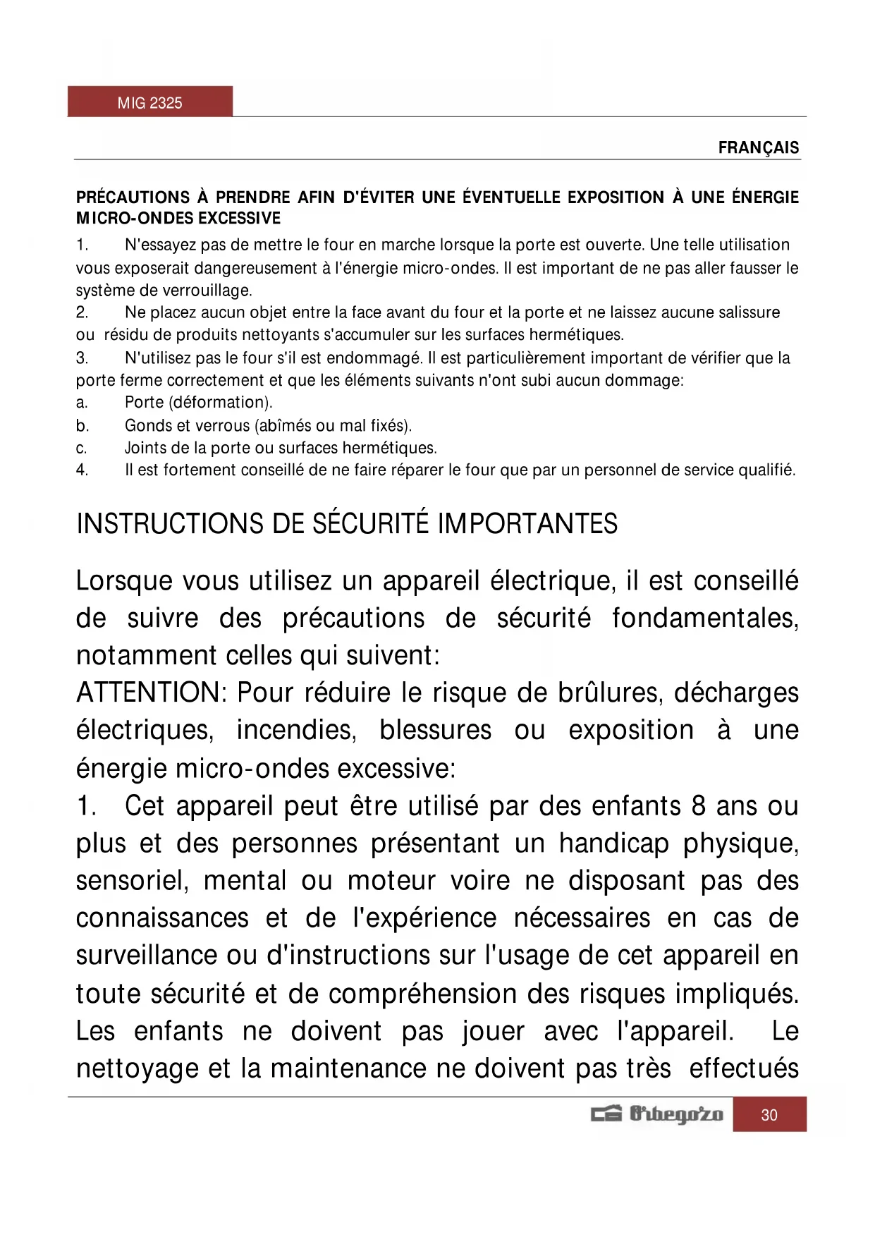 MODE D'EMPLOI MIG 2325 Orbegozo