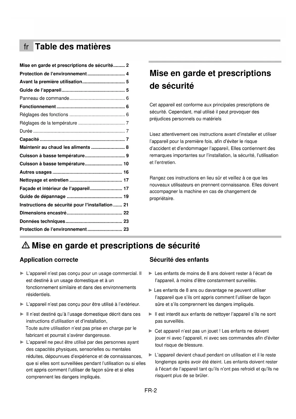 - Les récipients dépendent de la quantité ou de l’aliment contenu ou de la recette.FR-9 Cuisson à basse température De quoi s’agit-il ?