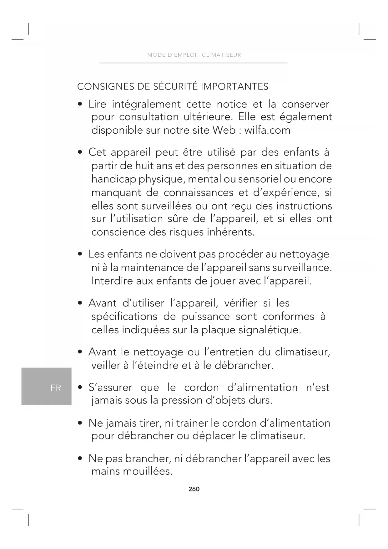 - Ne pas brancher, ni débrancher l’appareil avec les mains mouillées.261