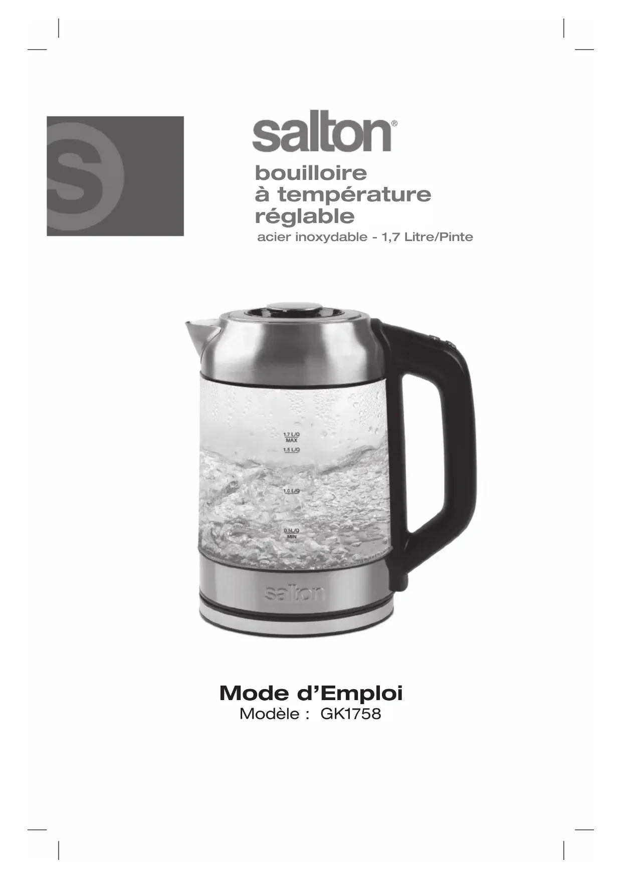 GK1758 - Bouilloire Salton - Notice d'utilisation et mode d'emploi gratuit