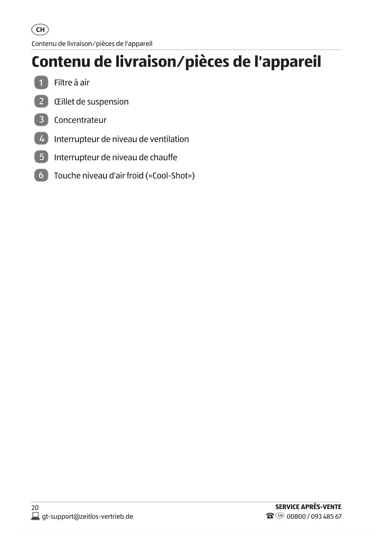Contenu de livraison⁄pièces de l'appareil Contenu de livraison⁄pièces de l'appareil