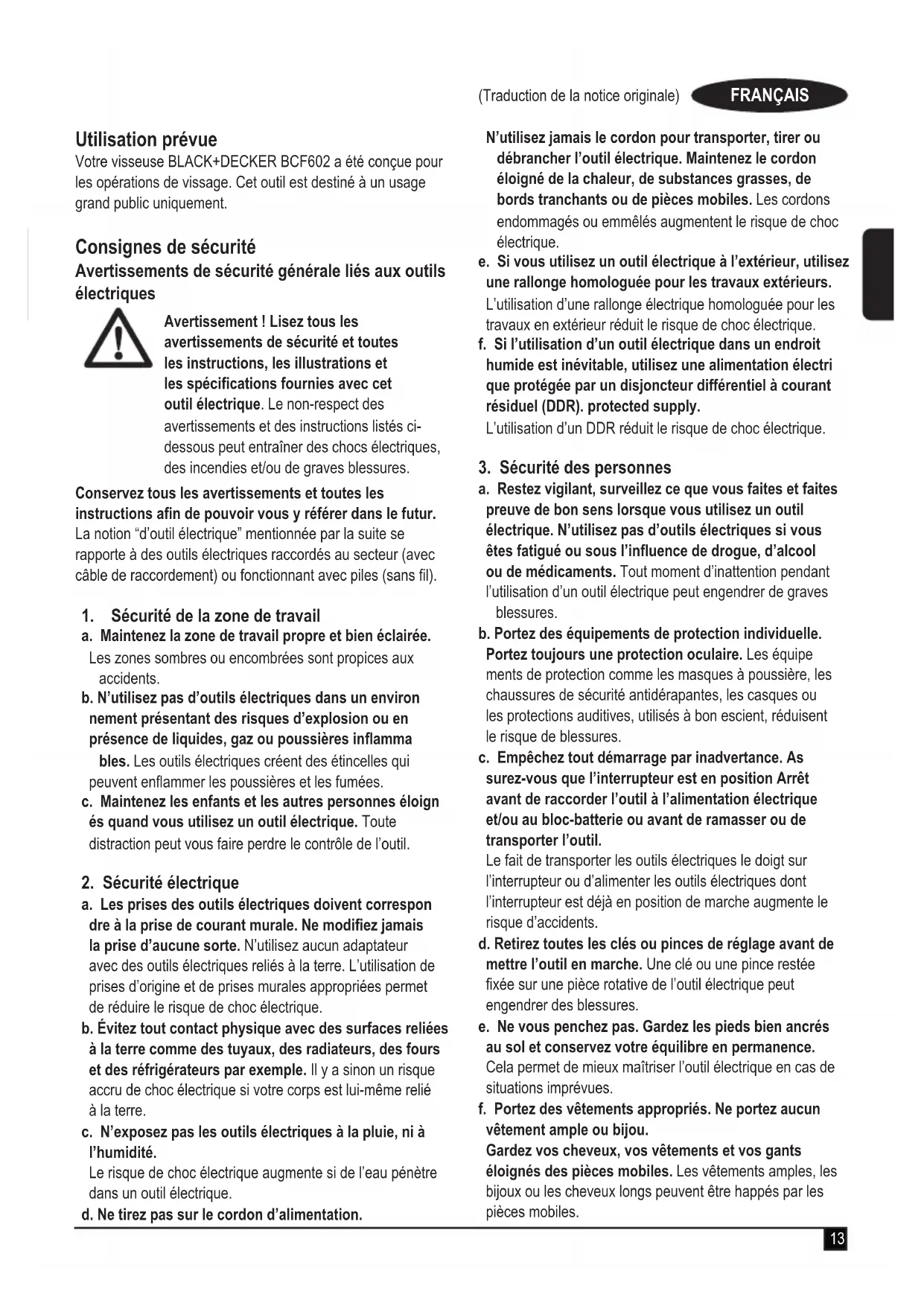 MODE D'EMPLOI BCF602 BLACK & DECKER