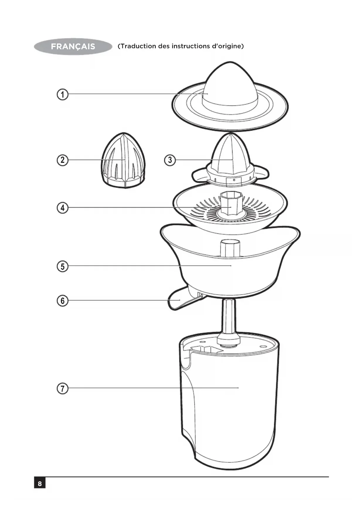 FRANÇAIS (Traduction des instructions d'origine) Usage prévu Votre centrifugeuse BLACK+DECKER CJ800 est conçue pour extraire le jus des agrumes. Cet appareil est destiné à une utilisation domestique, en intérieur uniquement. Cet appareil n'est pas destiné à une utilisation dans :