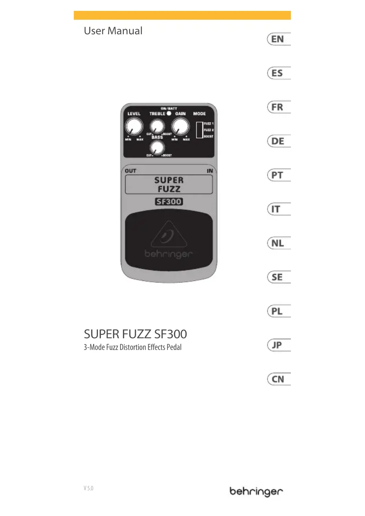 Super Fuzz SF300 - Guitare BEHRINGER - Notice d'utilisation et mode d'emploi gratuit