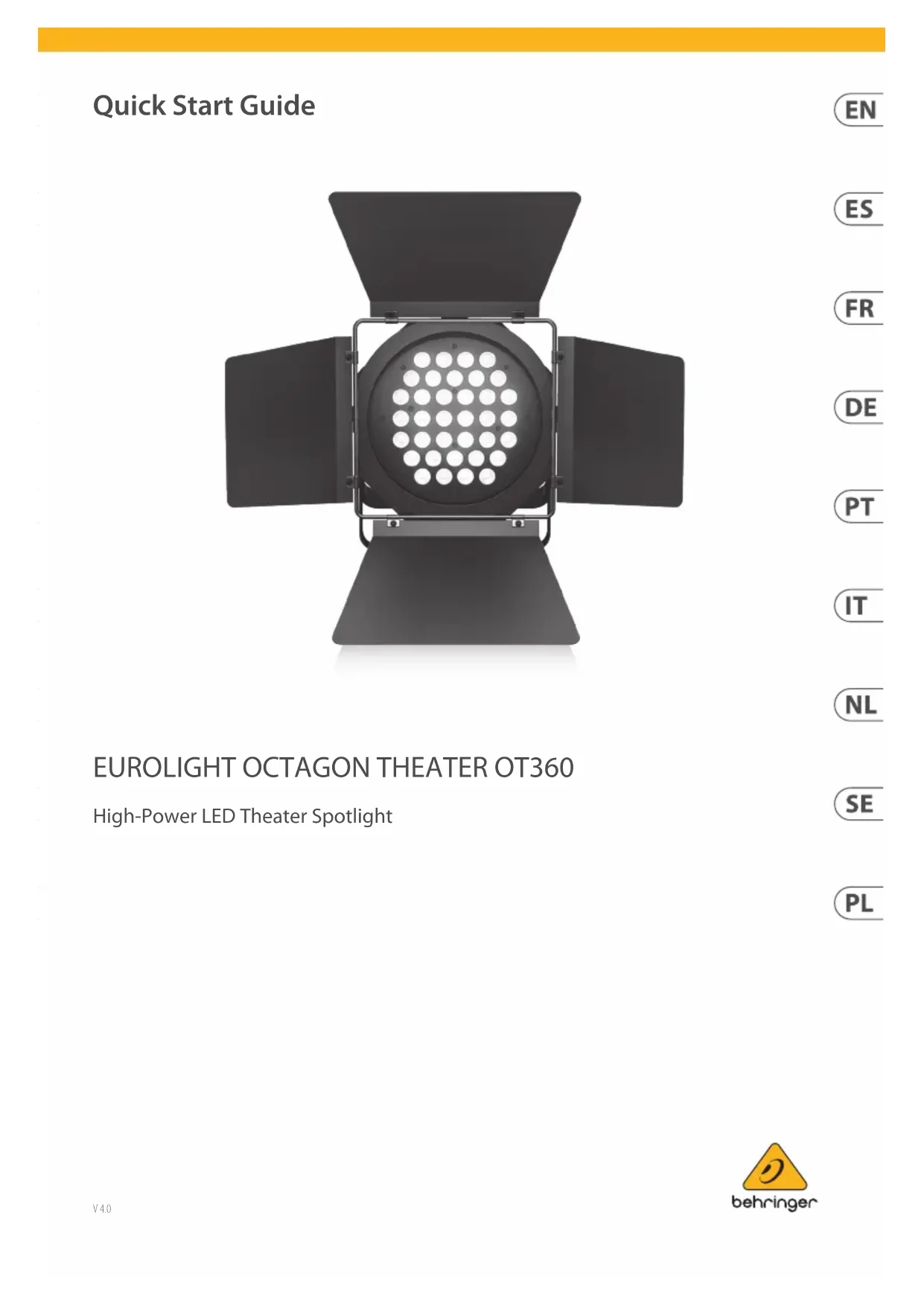 Retrouvez gratuitement la notice de l'appareil Eurolight Octagon Theater OT360 BEHRINGER au format PDF.
