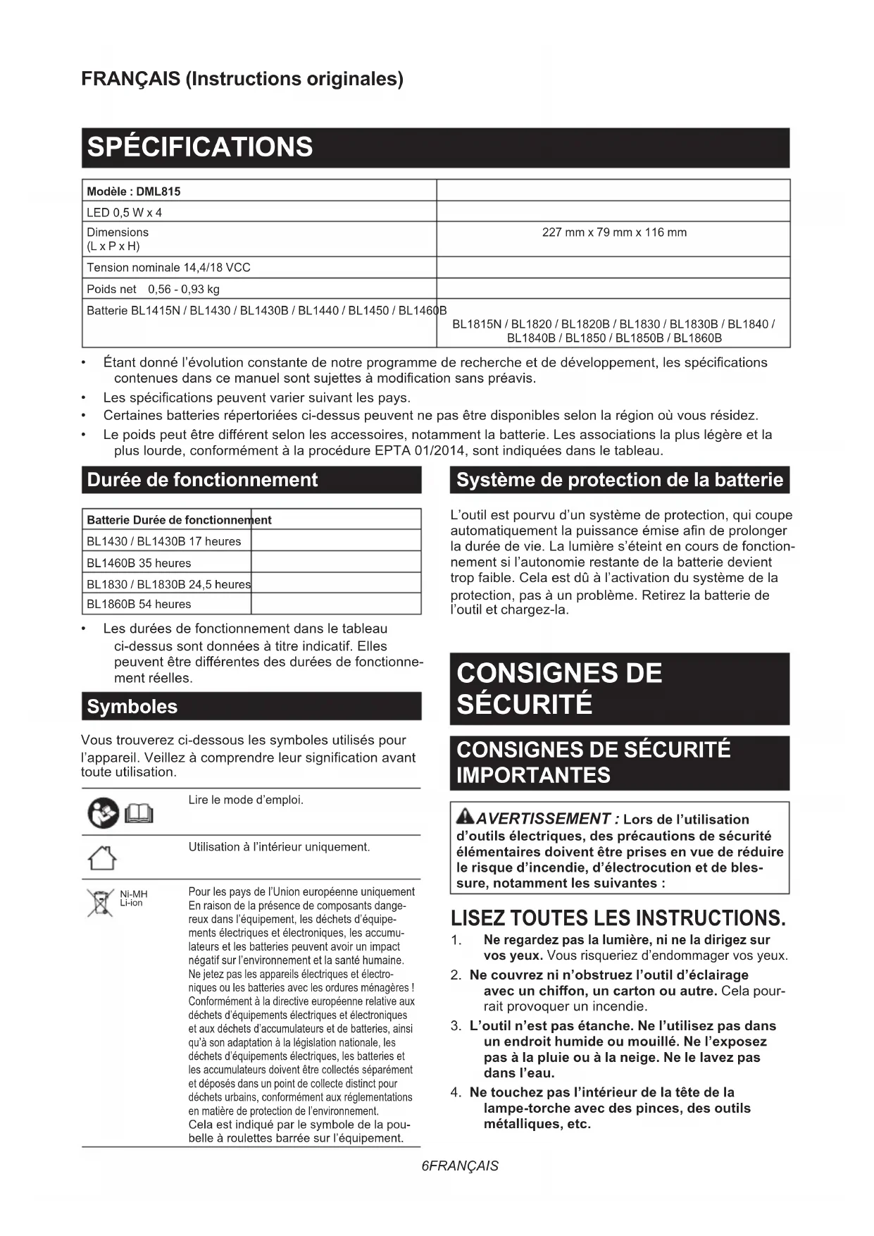 Lampe Torche à Batterie MANUEL D’INSTRUCTIONS 6