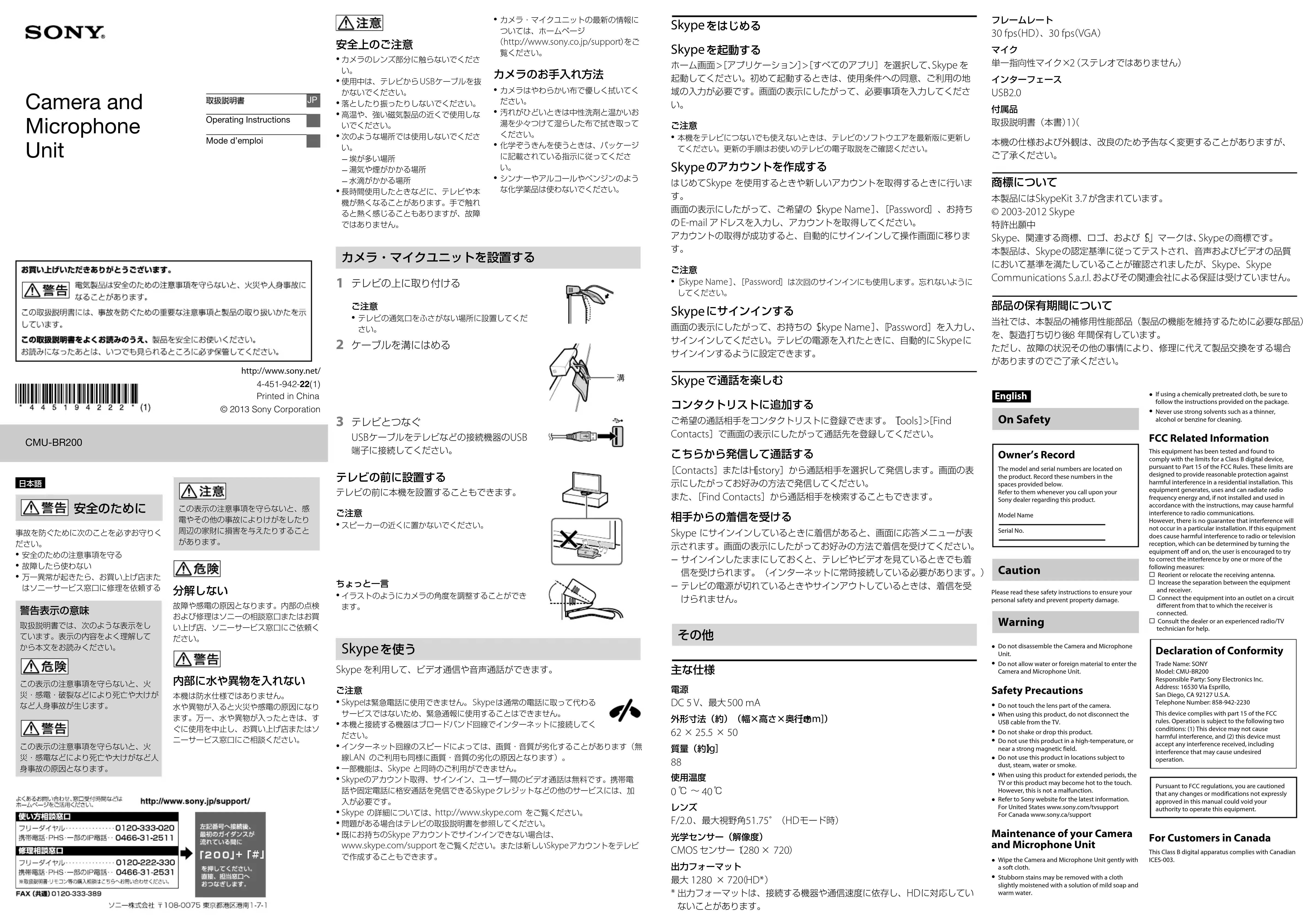 Téléchargez la notice de votre Webcam au format PDF gratuitement ! Retrouvez votre notice CMUBR200 - SONY et reprennez votre appareil électronique en main. Sur cette page sont publiés tous les documents nécessaires à l'utilisation de votre appareil CMUBR200 de la marque SONY.