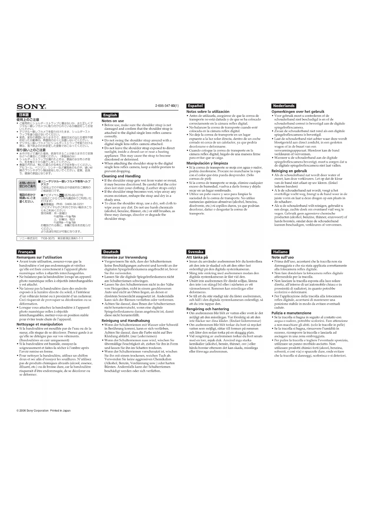 - Si la bandoulière est mouillée par de l’eau ou de la sueur, elle risque de se décolorer. Prenez garde à ce qu’elle ne déteigne pas sur vos vêtements. (Bandoulières en cuir uniquement)