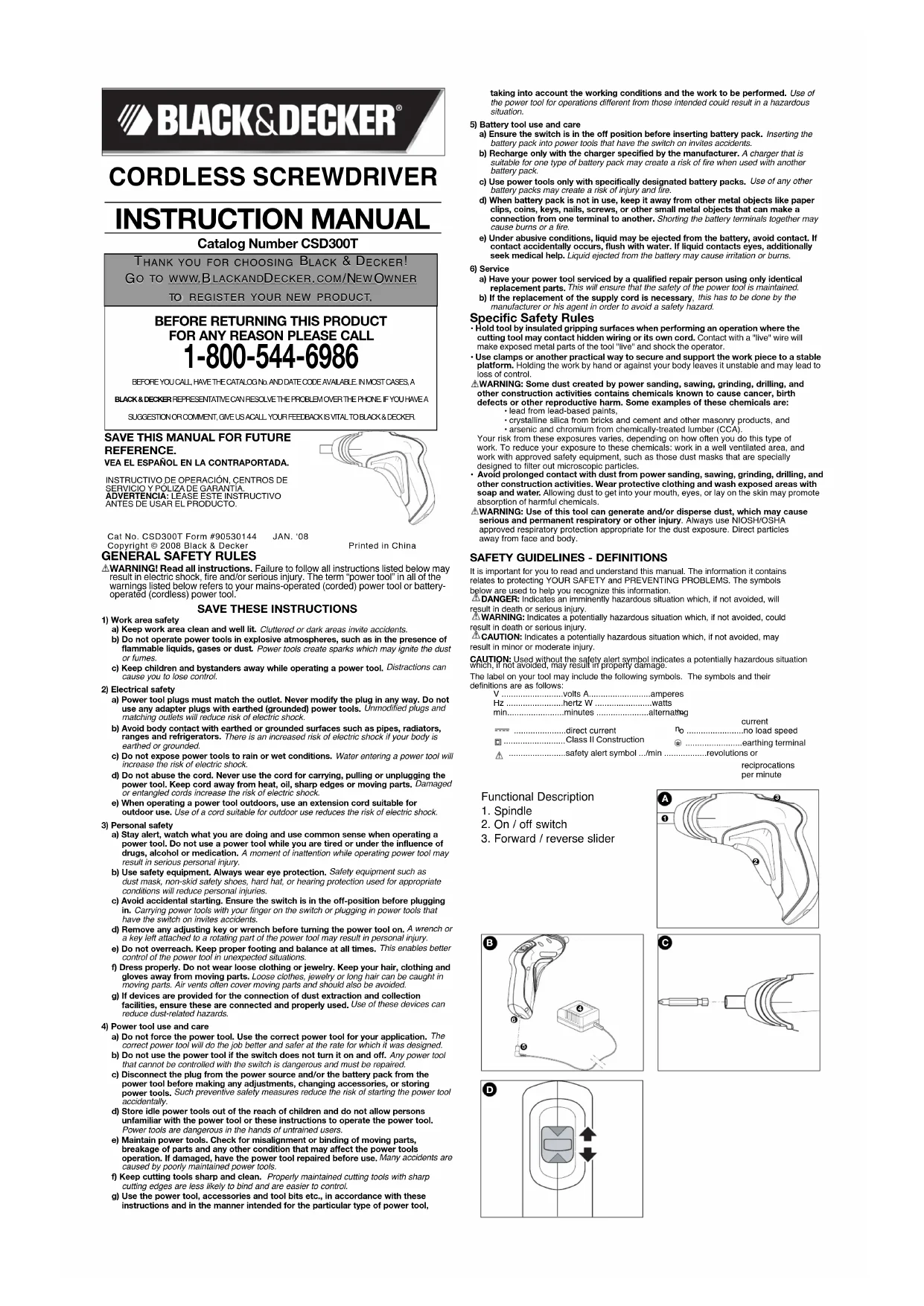 Retrouvez gratuitement la notice de l'appareil CSD300T BLACK & DECKER au format PDF.