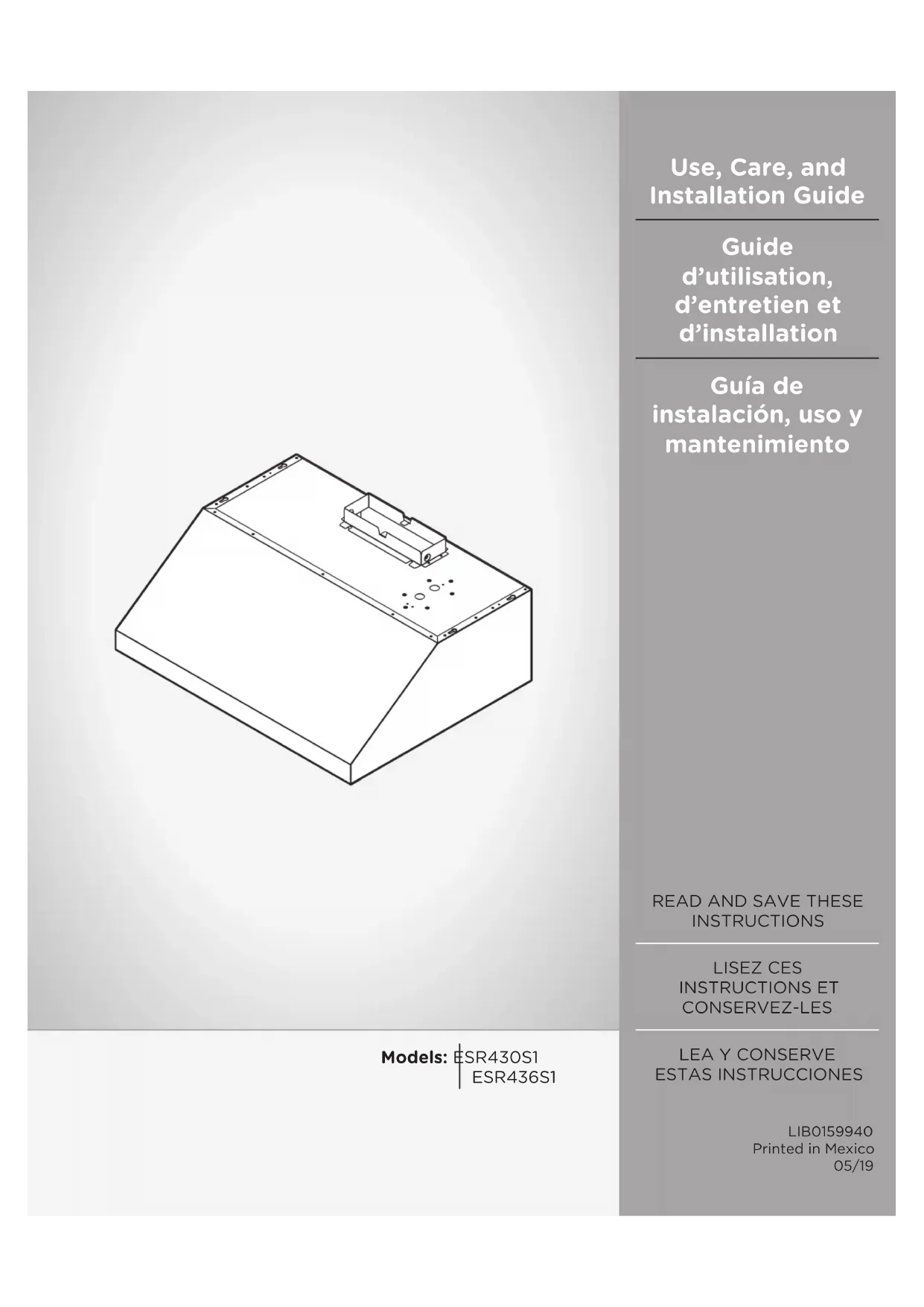 Retrouvez gratuitement la notice de l'appareil Sora ESR436SS ELICA au format PDF.