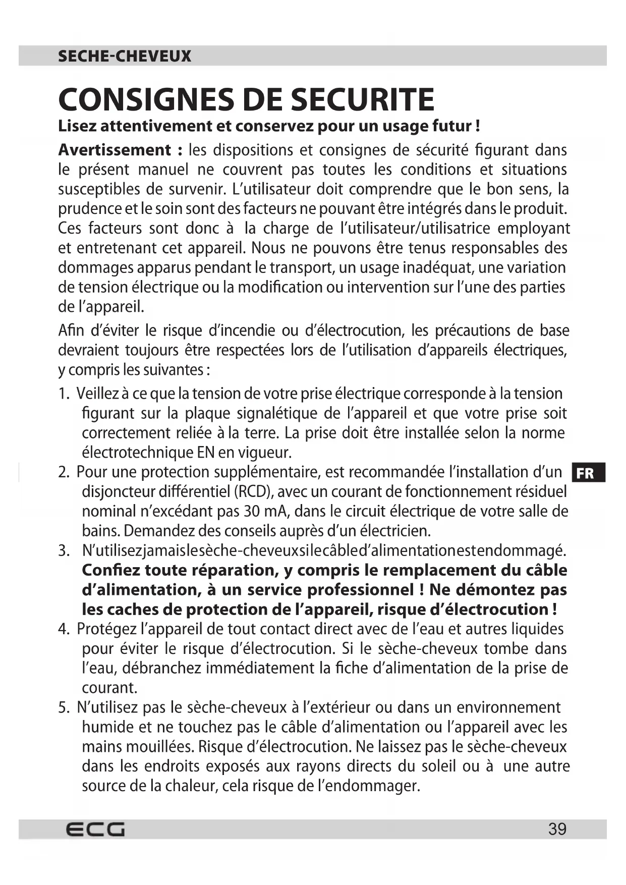 VV 2200 - Sèche cheveux ECG - Notice d'utilisation et mode d'emploi gratuit