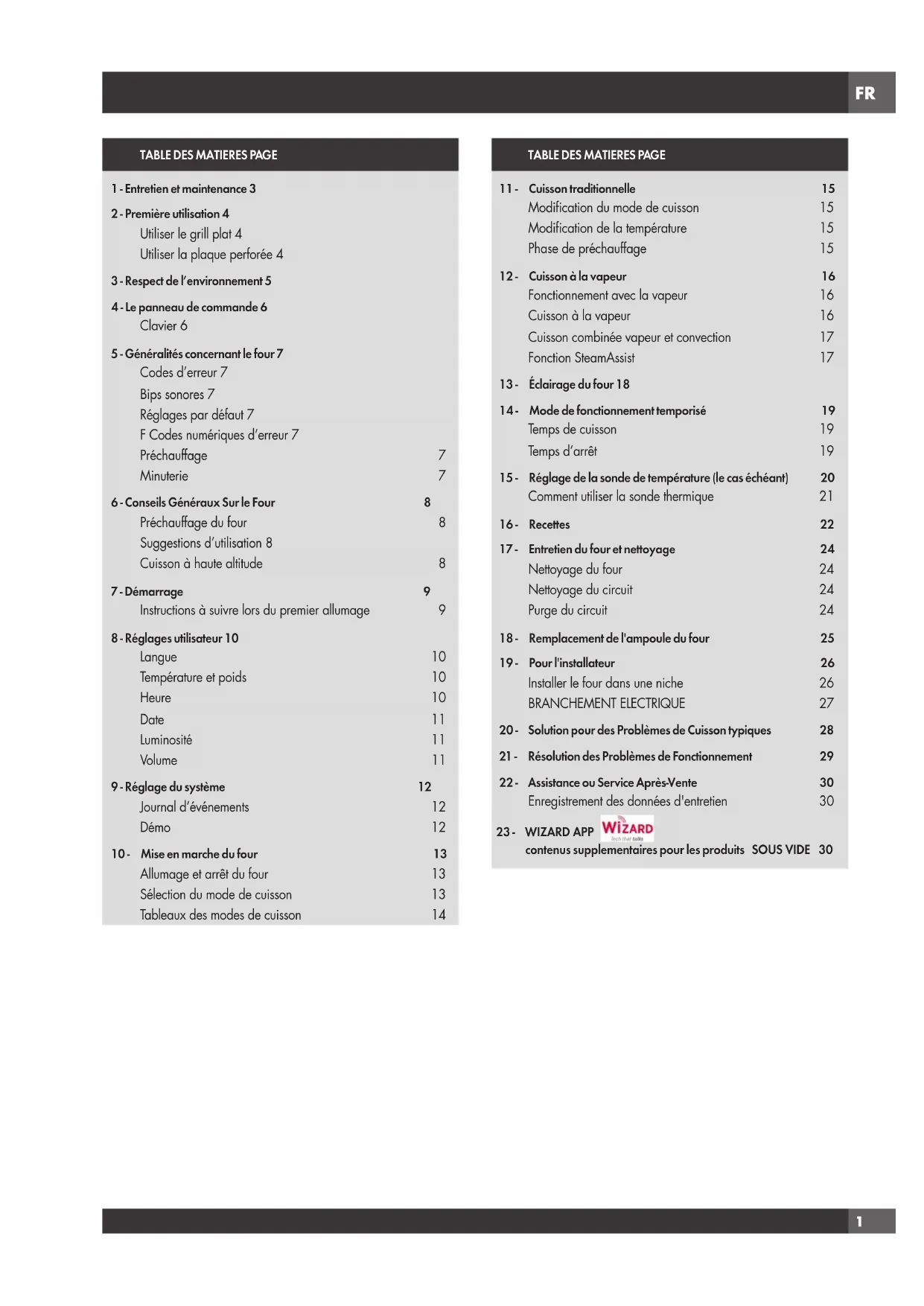 Temps de cuisson 19 Temps d’arrêt 19