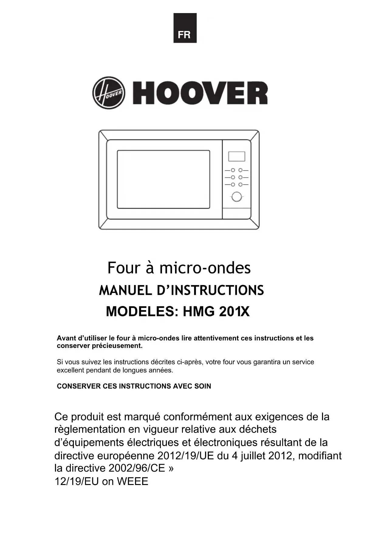 HMG171X - Four à micro-ondes HOOVER - Notice d'utilisation et mode d'emploi gratuit