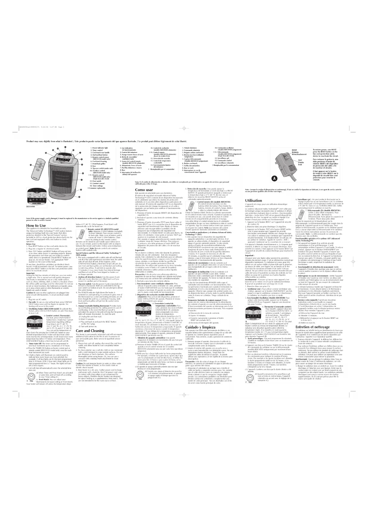 (AST) offre une technologie unique incorporée dans le radiateur et offrant une protection expliquée dans la section « Fonctionnalités Spéciales » Inclus dans l’AST est un appareil dispositif de protection de choc incorporé au cordon et équipé d’un bouton d’essai pour vérifier son fonctionnement.