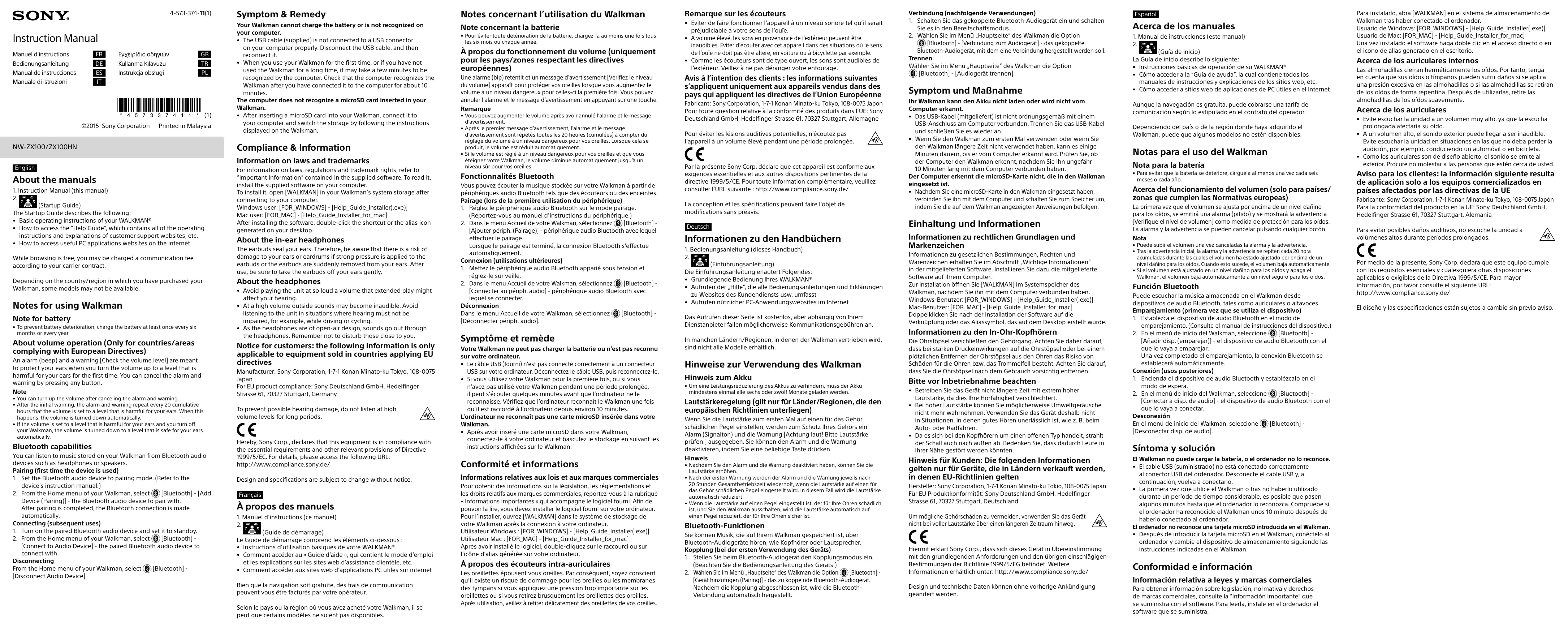 Retrouvez gratuitement la notice de l'appareil NW-ZX100 SONY au format PDF.