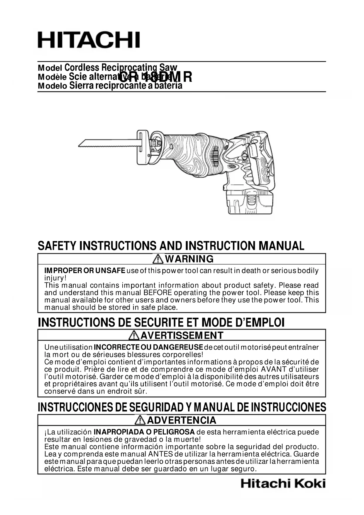 CR 18DMR - Scie HITACHI - Notice d'utilisation et mode d'emploi gratuit
