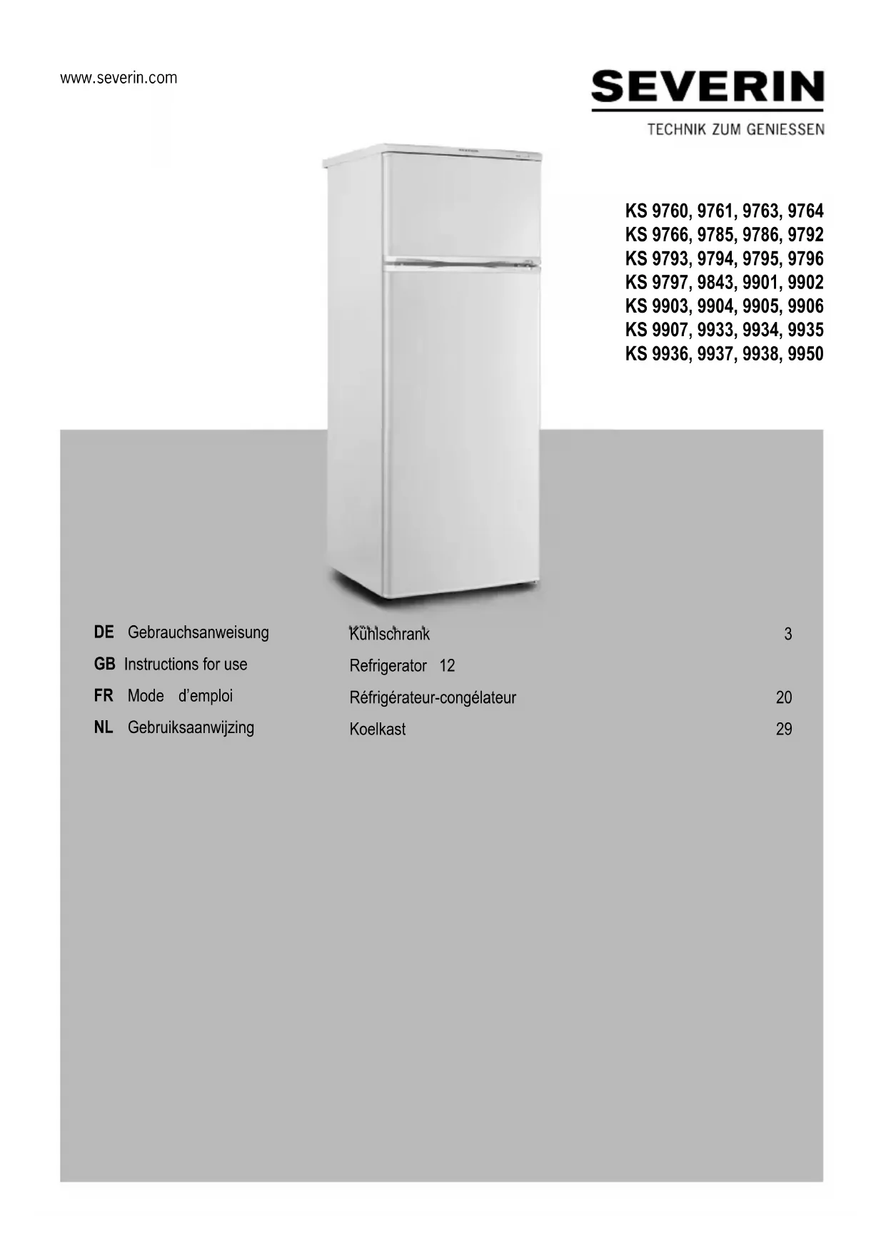KS 9937 - Réfrigérateur SEVERIN - Notice d'utilisation et mode d'emploi gratuit