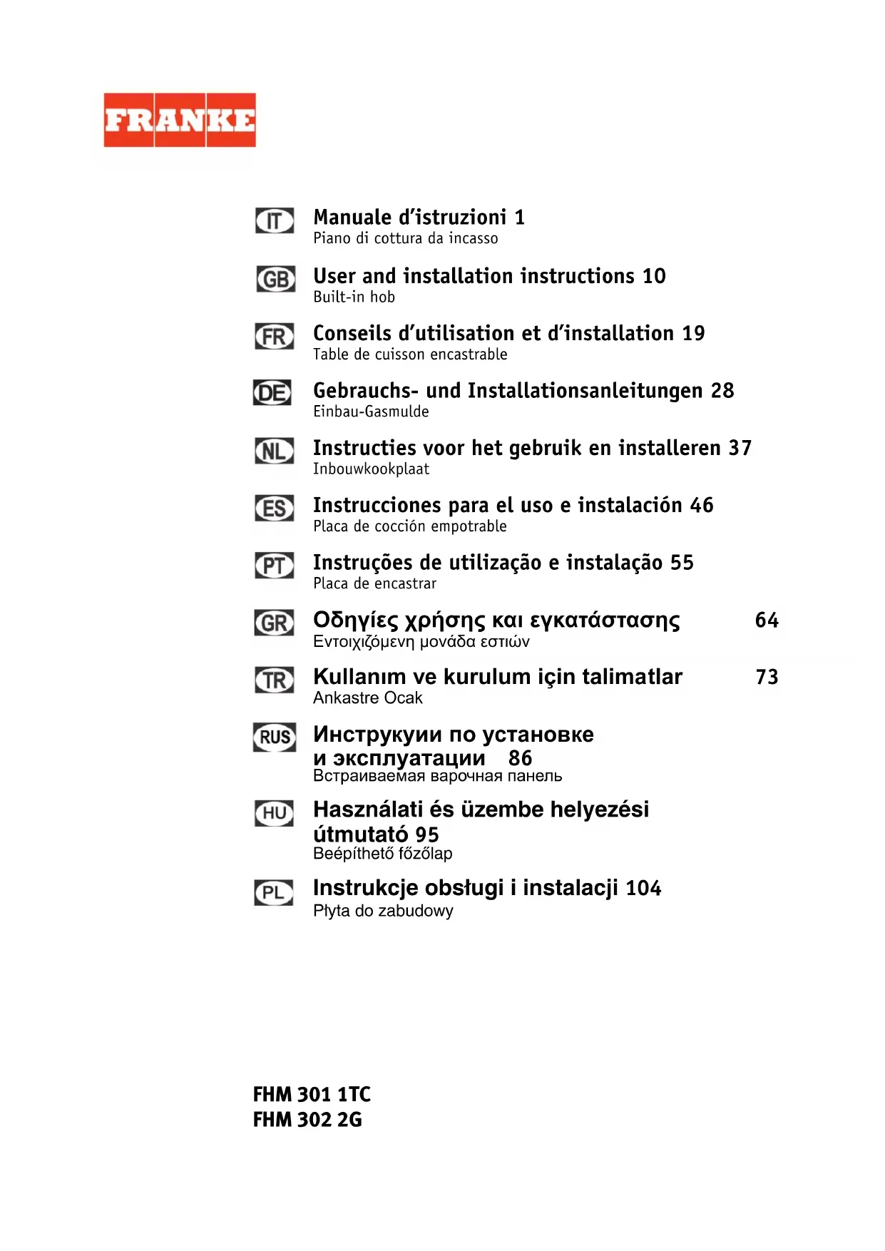 Retrouvez gratuitement la notice de l'appareil FHM 301 1TC FRANKE au format PDF.