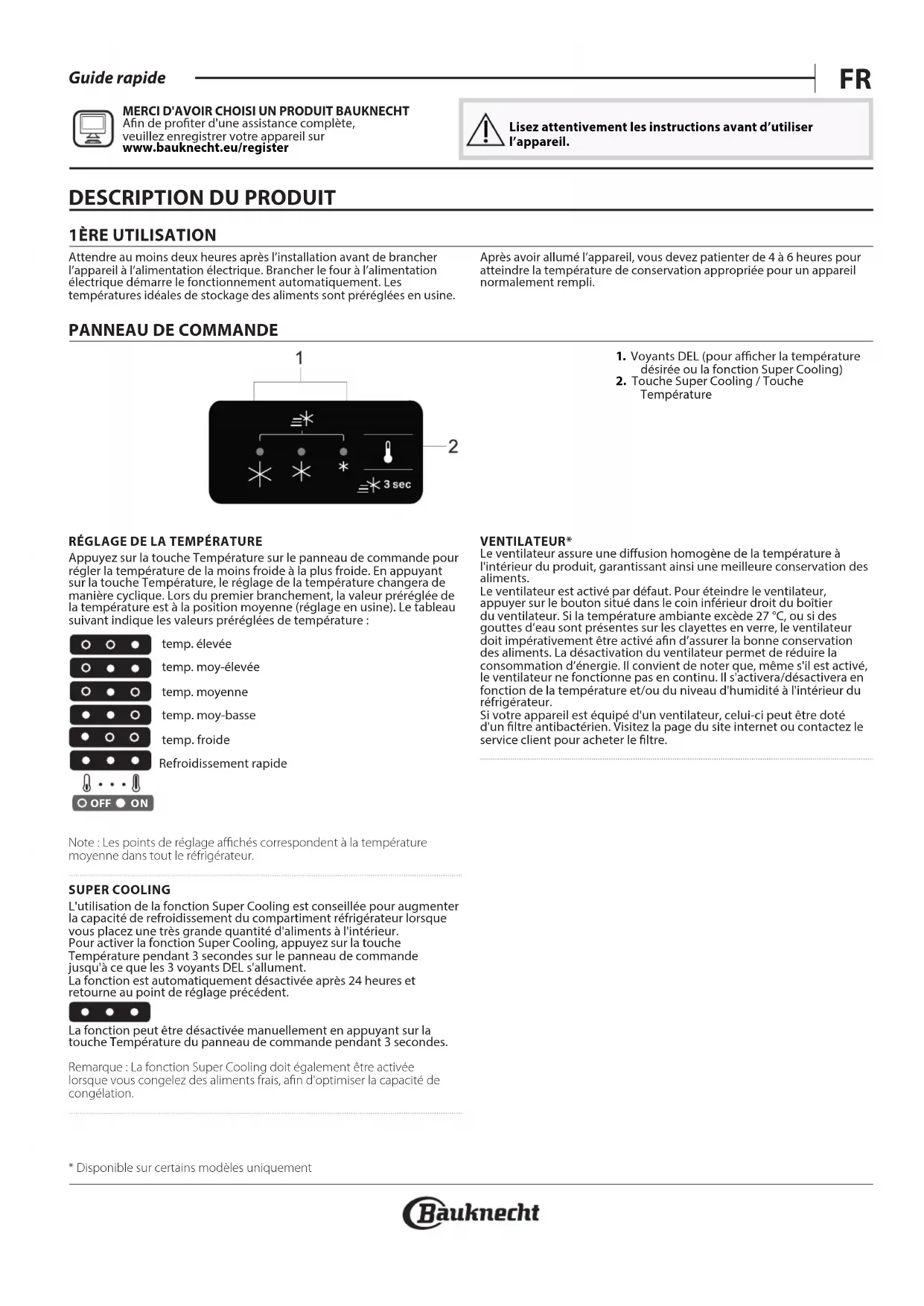 An de proter d'une assistance complète, veuillez enregistrer votre appareil sur www . bauknecht . eu/ register Lisez attentivement les instructions avant d’utiliser l’appareil.
