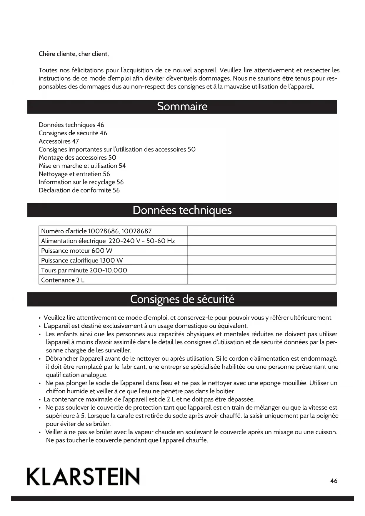 Retrouvez gratuitement la notice de l'appareil 10028687 Klarstein au format PDF.