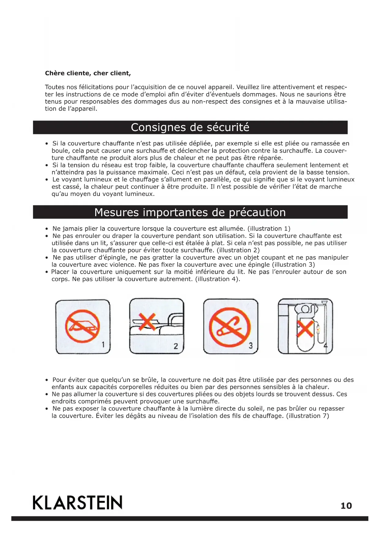 10022094 - Couverture chauffante Klarstein - Notice d'utilisation et mode d'emploi gratuit