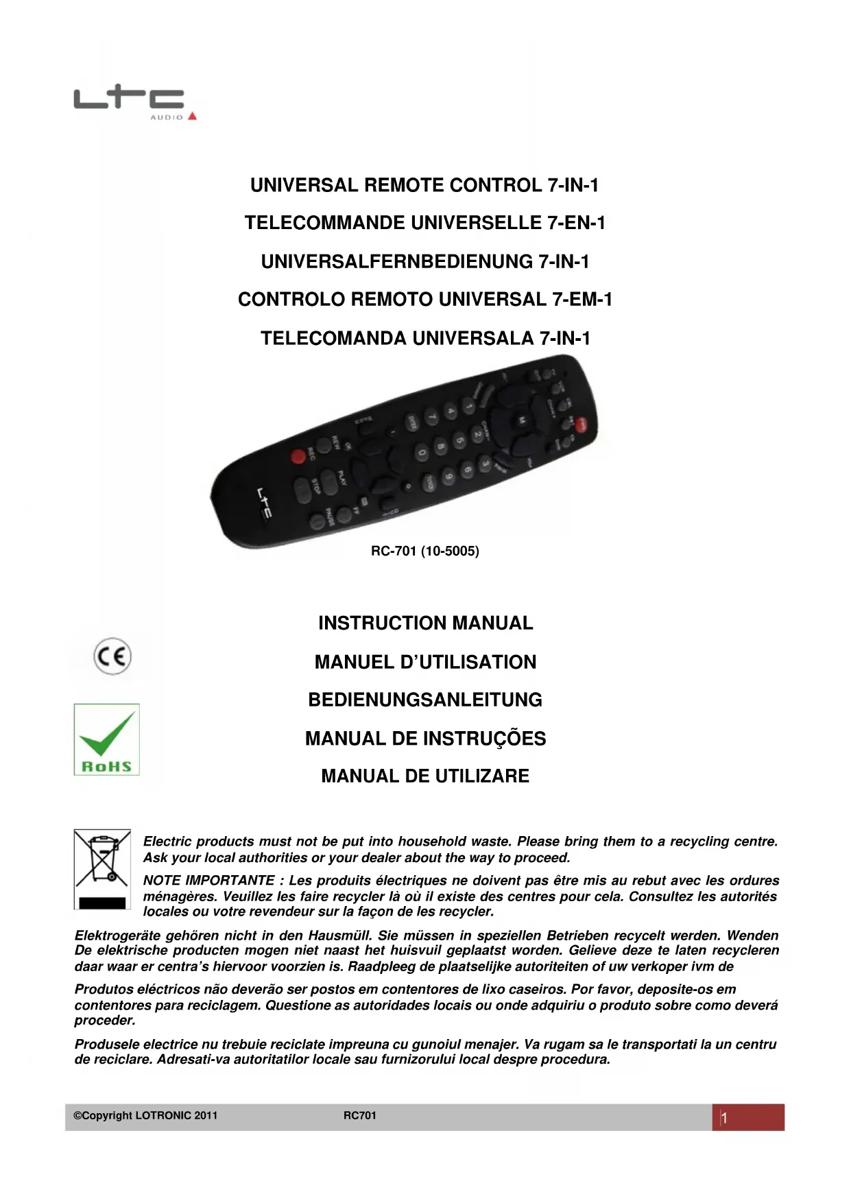 Retrouvez gratuitement la notice de l'appareil RC701 LTC au format PDF.