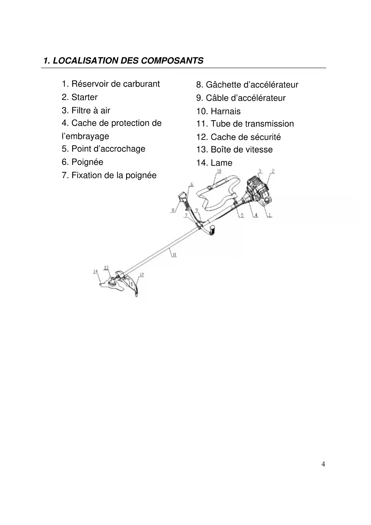Carburant moteur Méthode d’arrêt Circuit de démarrage principal court20 (bouton) Poids net 3.5 Kg 3,9 Kg *Les caractéristiques sont soumises à des modifications sans préavis!21 GARANTIE Pour les clauses de garantie, reportez-vous aux conditions de garantie ci-jointes. ENVIRONNEMENT Si, après un certain temps, vous décidez de remplacer votre machine, ne vous en débarrassez pas avec les ordures ménagères mais destinez-la à un traitement respectueux de l’environnement.22 FR Vous trouverez les mises à jour des modes d’emploi, les vues éclatées, les informations concernant les pièces de rechange ainsi que les coordonnées de nos stations techniques pour tout produit thermique: www.eco-repa.com NL U kunt updates van handleidingen, exploded views, informatie over onderdelen en contact opnemen met onze technische stations voor elk product thermische: www.eco-repa.com GB You can find updates of manuals, exploded views, information on spare parts and contact our technical stations for any product thermal : www.eco-repa.com D Sie können Updates von Handbüchern zu finden, Abbildungen, Informationen zu Ersatzteilen und an unseren technischen Stationen für jedes Produkt thermischen: www.eco-repa.com IT È possibile trovare gli aggiornamenti dei manuali, esplosi, informazioni su parti di ricambio e di contattare il nostro stazioni tecnico per qualsiasi prodotto termale: www.eco-repa.com