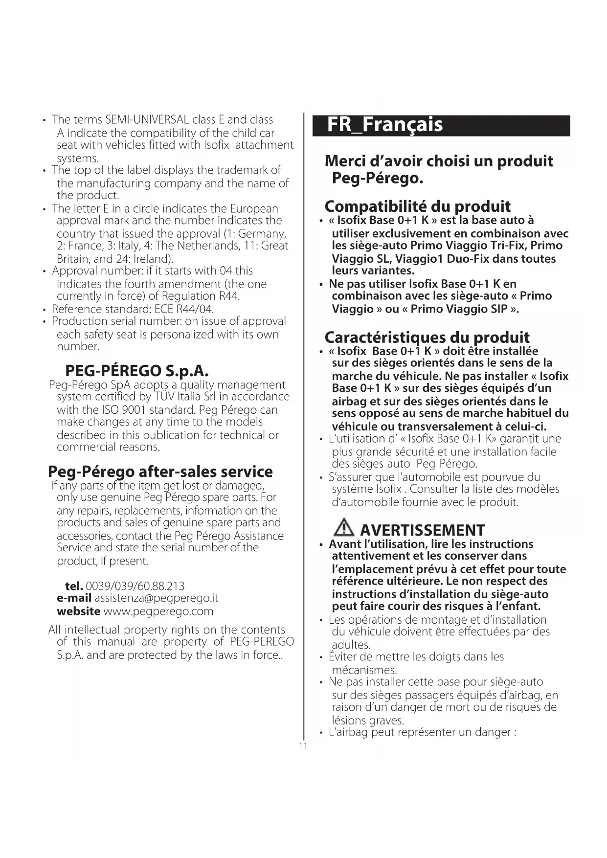 MODE D'EMPLOI Isofix Base 0+1 K PEG PEREGO