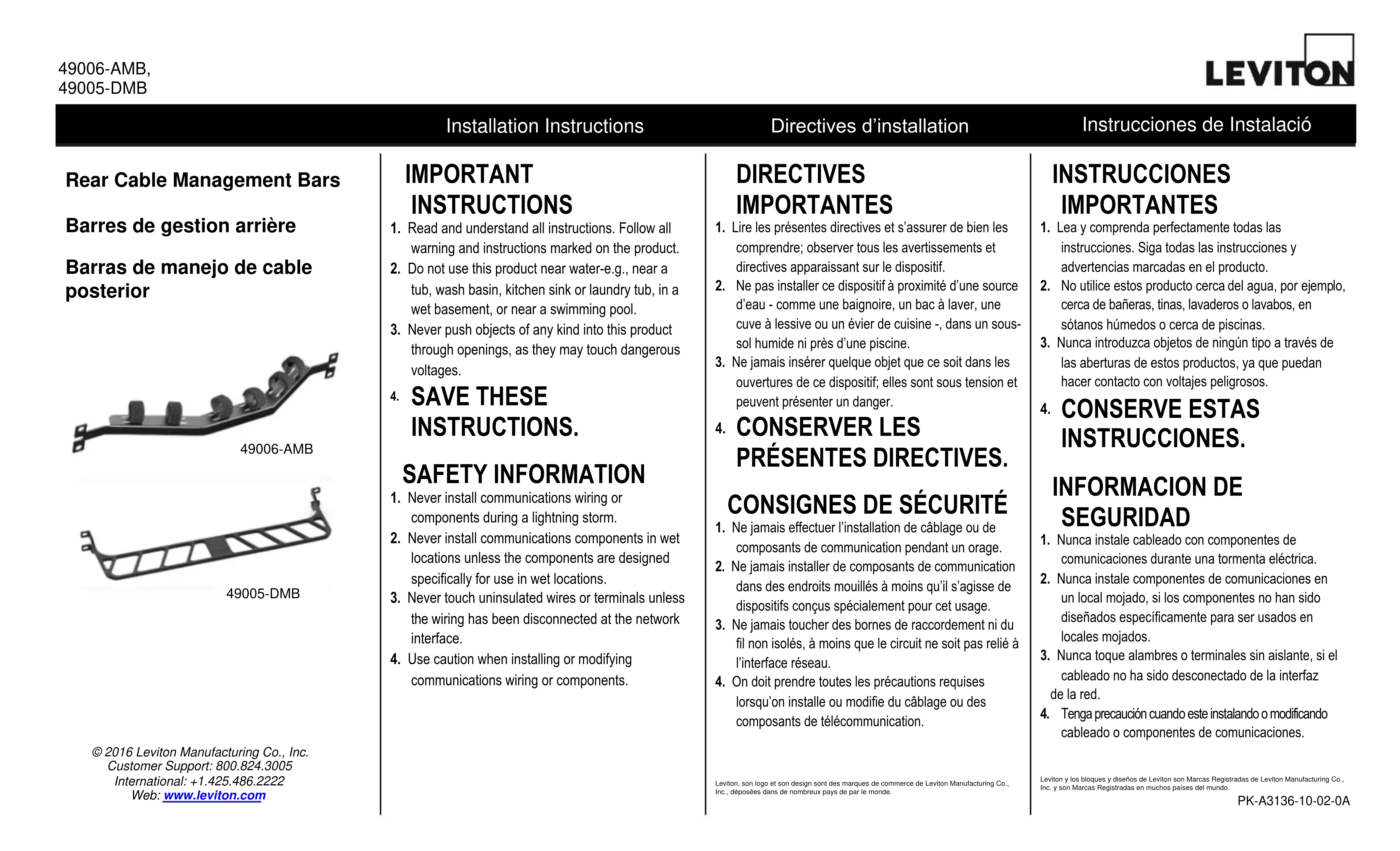 Téléchargez la notice de votre Accessoire électrique au format PDF gratuitement ! Retrouvez votre notice 49005DMB - Leviton et reprennez votre appareil électronique en main. Sur cette page sont publiés tous les documents nécessaires à l'utilisation de votre appareil 49005DMB de la marque Leviton.