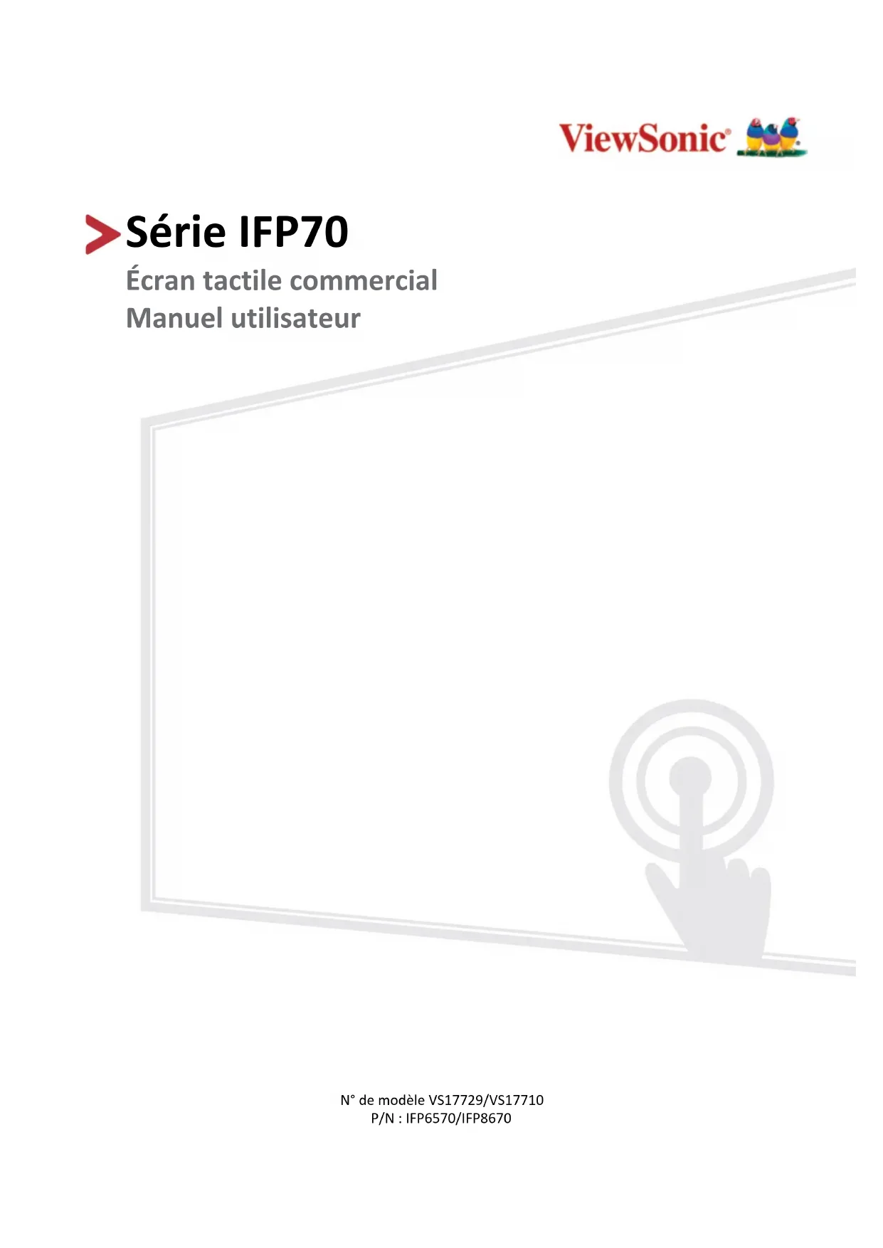 Série IFP70 Écran tactile commercial Manuel utilisateur N° de modèle VS17729/VS17710