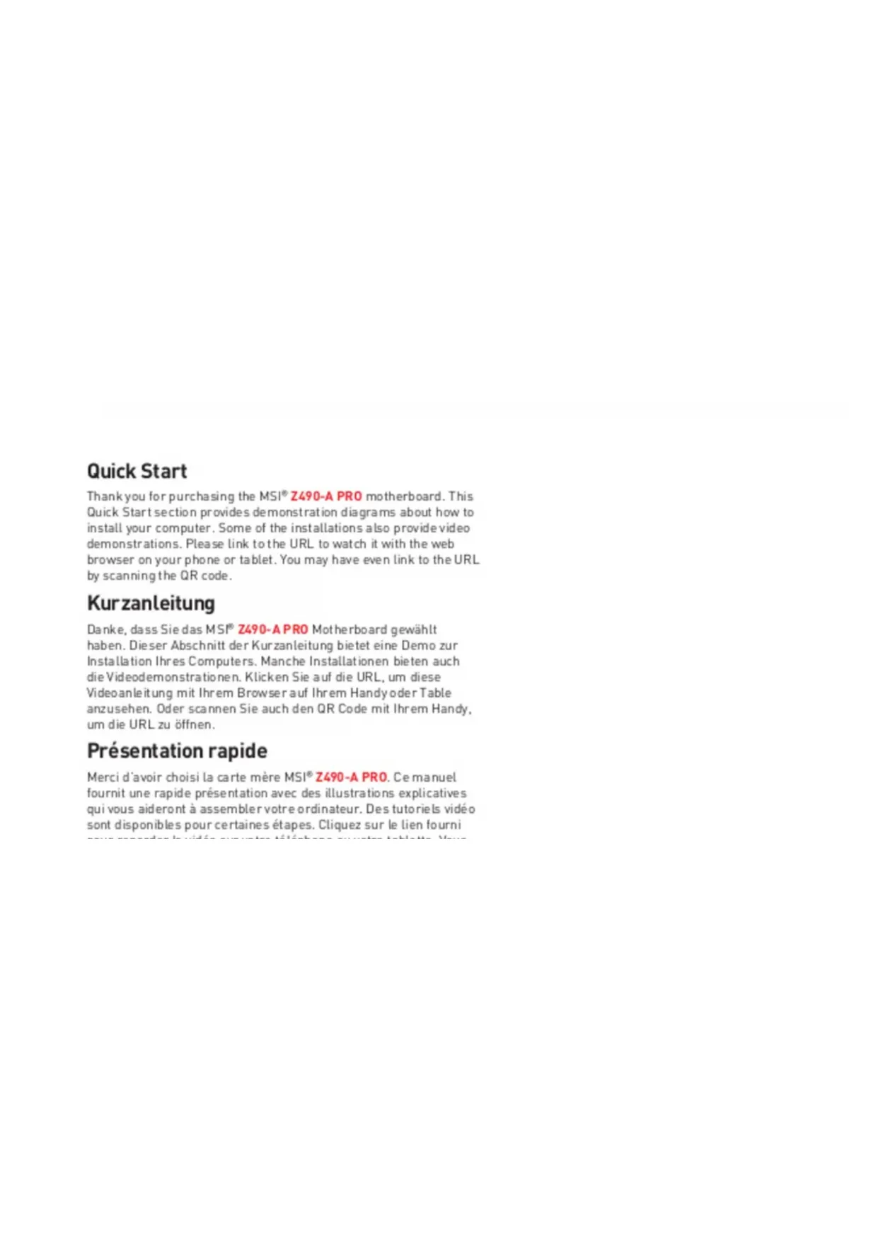 Retrouvez gratuitement la notice de l'appareil Z490A PRO MSI au format PDF.