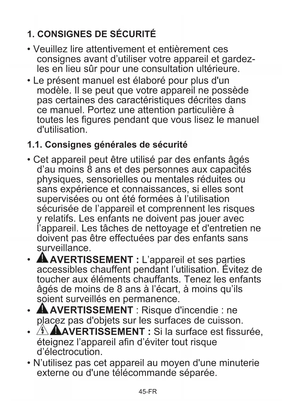 - Le présent manuel est élaboré pour plus d'un modèle. Il se peut que votre appareil ne possède pas certaines des caractéristiques décrites dans ce manuel. Portez une attention particulière à toutes les figures pendant que vous lisez le manuel d'utilisation. 1.1. Consignes générales de sécurité