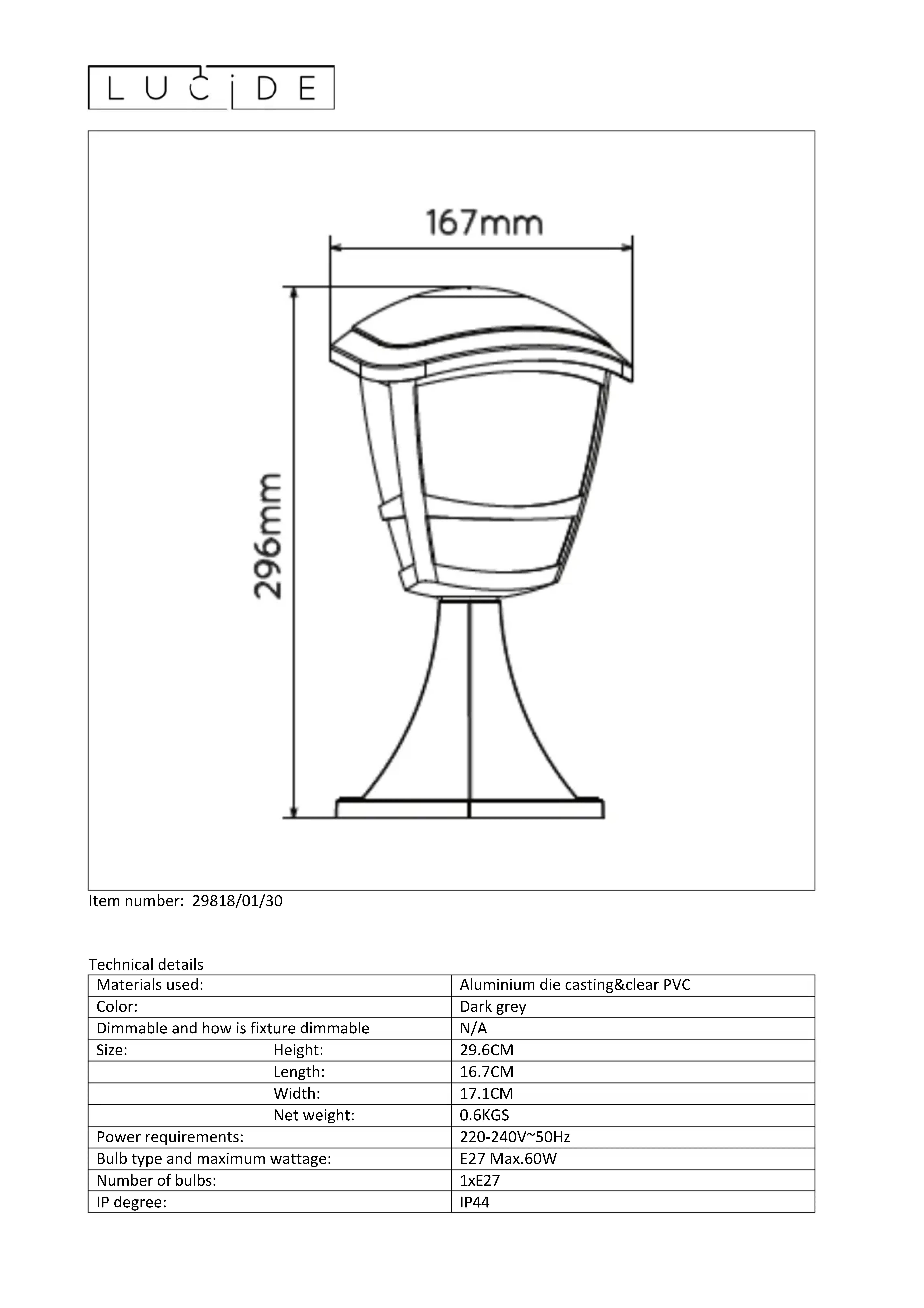 Istro 298180130 - Lampe extérieure Lucide - Notice d'utilisation et mode d'emploi gratuit