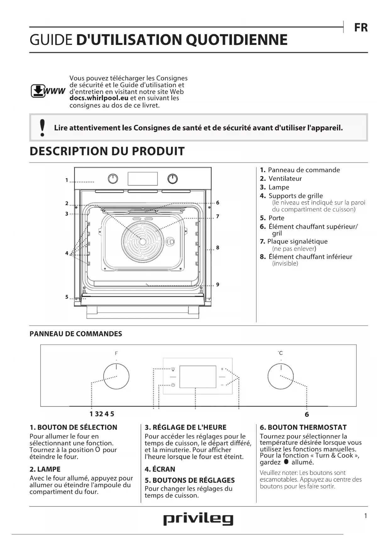 Lire attentivement les Consignes de santé et de sécurité avant d'utiliser l'appareil. WWW Vous pouvez télécharger les Consignes de sécurité et le Guide d'utilisation et d'entretien en visitant notre site Web docs.whirlpool.eu et en suivant les consignes au dos de ce livret.