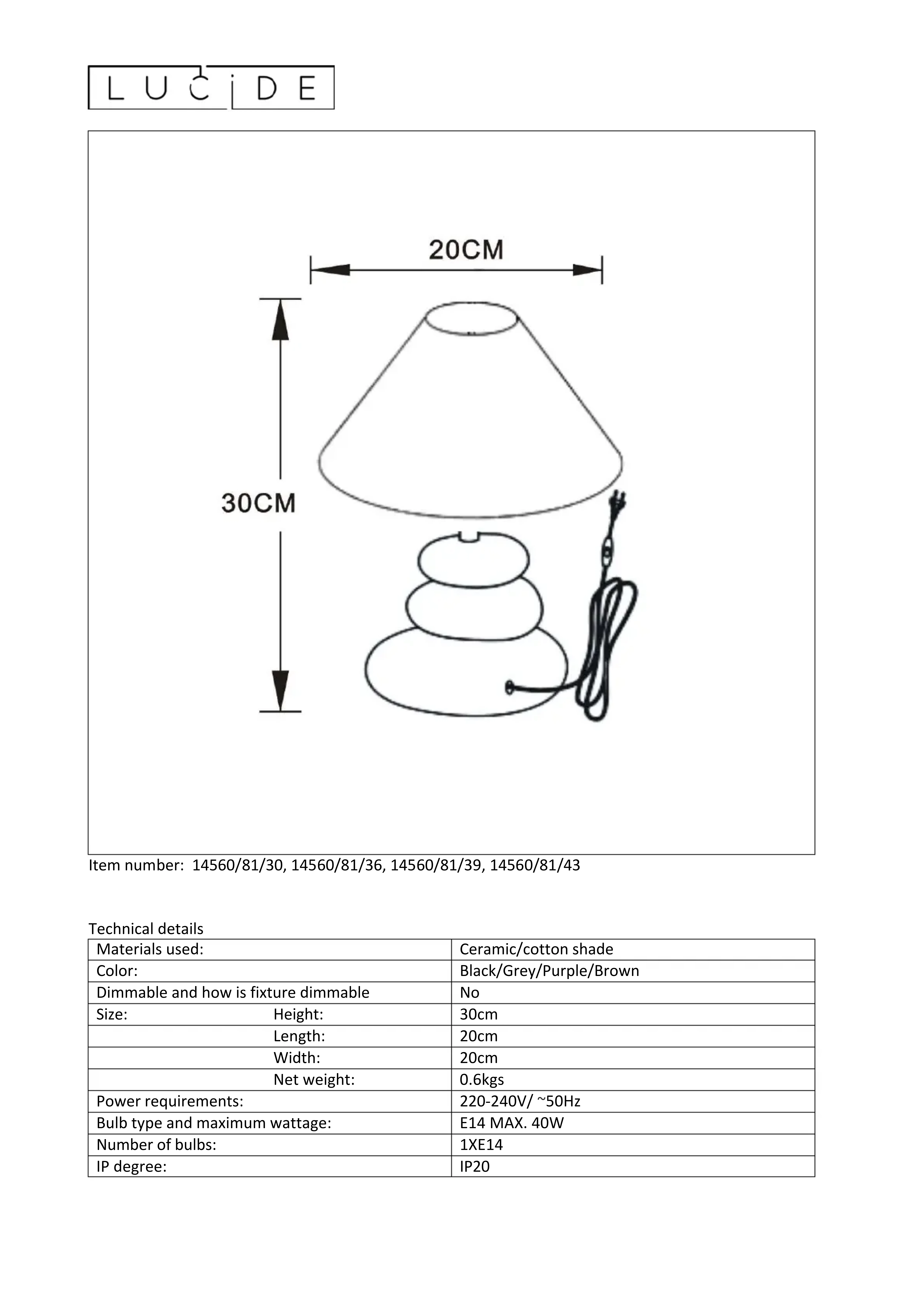 Karla 145608143 - Lampe de table Lucide - Notice d'utilisation et mode d'emploi gratuit