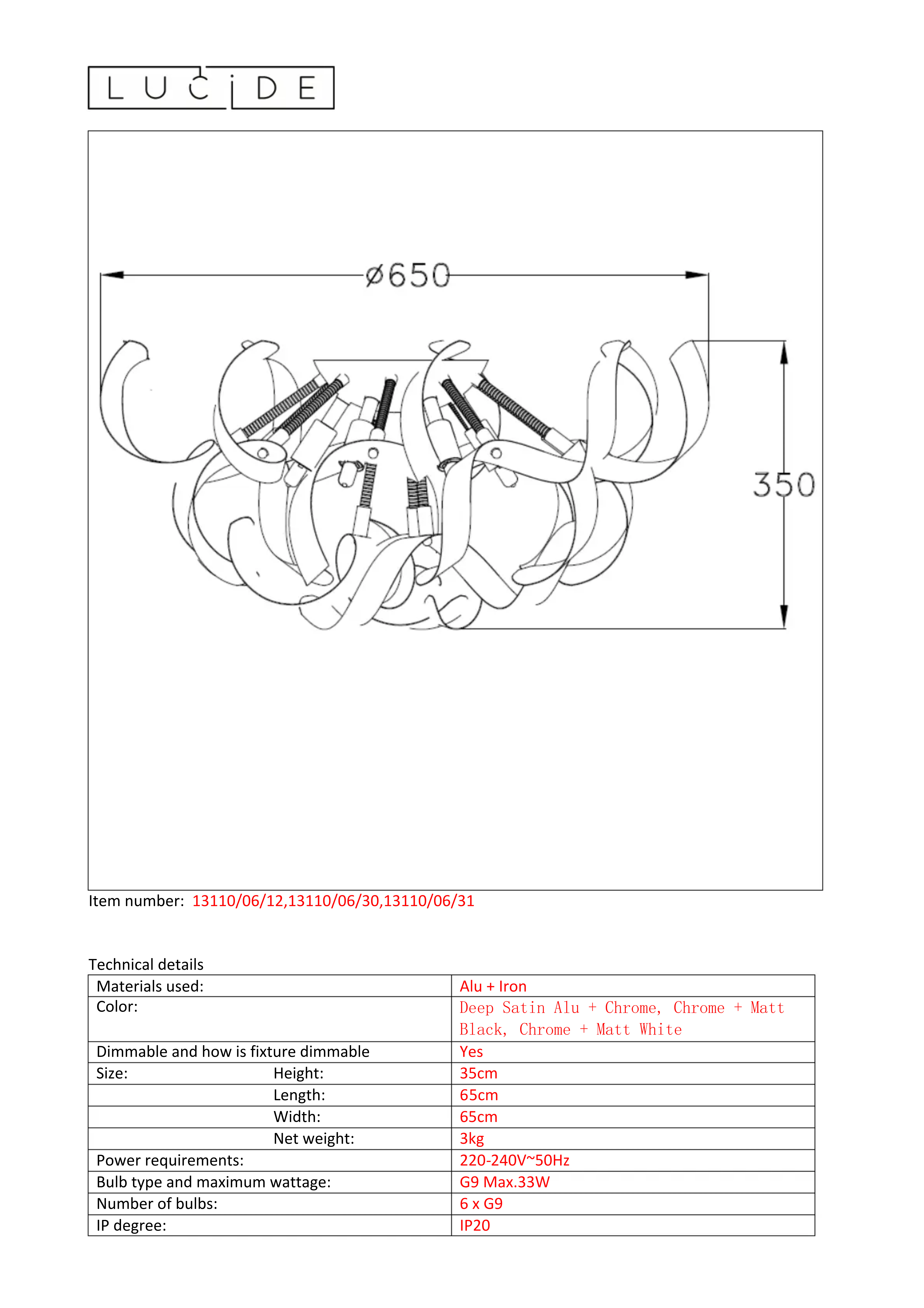 Atoma 131100631 - Luminaire Lucide - Notice d'utilisation et mode d'emploi gratuit