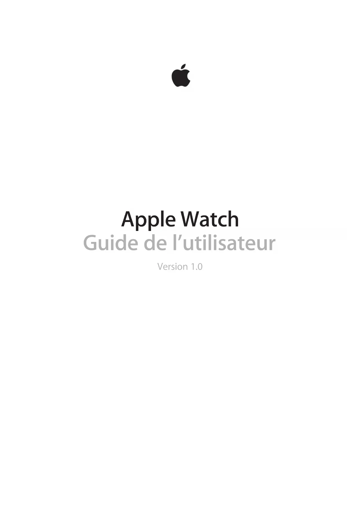 Apple Watch Guide de l’utilisateur Version 1.0Table des matières 5 Chapitre 1 : Premiers pas 5 L’Apple Watch en bref 6 Congurer la montre et la jumeler à l’iPhone 7 Icônes d’état 8 L’app Apple Watch sur l’iPhone 8 Allumage, réactivation et déverrouillage 11 Ajuster la luminosité, la taille du texte, les sons et les vibrations 13 Changer de langue et d’orientation 14 Recharger l’Apple Watch 16 Consulter ce guide de l’utilisateur 17 Chapitre 2 : Notions élémentaires 17 Utiliser et organiser des apps 19 Icônes des apps 20 Contacter vos amis 20 Utiliser Hando pour basculer entre l’Apple Watch et l’iPhone 21 Localiser votre iPhone 21 Utiliser l’Apple Watch sans son iPhone jumelé 22 Siri sur l’Apple Watch 23 En avion 24 Chapitre 3 : Cadrans de l’heure 24 Personnaliser le cadran de l’heure 26 Cadrans de l’heure et fonctionnalités 30 Chapitre 4 : Notications 30 Notications sur l’Apple Watch 30 Répondre aux notications dès leur réception 31 Répondre aux notications non lues 33 Chapitre 5 : Coups d’œil 33 Jeter un œil aux informations utiles 33 Consulter vos Coups d’œil 34 Organiser vos Coups d’œil 35 Chapitre 6 : Heure et temps 35 Connaître l’heure d’autres lieux 37 Régler des réveils 39 Utiliser un minuteur 40 Chronométrer des événements grâce au chronomètre 42 Chapitre 7 : Messages 42 Consulter des messages et y répondre 43 Envoyer et gérer les messages 246 Chapitre 8 : Digital Touch 46 En savoir plus sur Digital Touch 47 Envoyer un Digital Touch 48 Chapitre 9 : Mail 48 Consulter vos e-mails 49 Gérer vos e-mails 51 Chapitre 10 : Appels téléphoniques 51 Répondre au téléphone 52 Passer des appels 53 Chapitre 11 : Calendriers et rappels 53 Consulter votre calendrier et le mettre à jour 55 Dénir des rappels et y répondre 56 Chapitre 12 : Santé et forme 56 Suivre vos eorts au quotidien 58 Eectuer un suivi de vos entraînements 60 Vérier votre rythme cardiaque 61 Avoir des données ables 62 Chapitre 13 : Apple Pay et Passbook 62 Eectuer des achats avec Apple Pay 64 Utiliser Passbook 65 Chapitre 14 : Plans et itinéraires 65 Explorer le plan 66 Suivre un itinéraire 68 Chapitre 15 : Musique 68 Écouter de la musique sur l’iPhone 69 Écouter de la musique sur l’Apple Watch 70 Chapitre 16 : Télécommande 70 Contrôler la musique sur un Mac ou un PC 71 Contrôler l’Apple TV 72 Chapitre 17 : Photos 72 Regarder des photos sur l’Apple Watch 73 Choisir votre album 73 Gérer le stockage des photos 74 Chapitre 18 : Télécommande pour l’appareil photo 74 Utiliser un viseur et un obturateur distants 75 Utiliser le retardateur 76 Chapitre 19 : Bourse 76 Suivre les cours de la bourse 77 Suivre une action en un coup d’œil 77 Ajouter des informations sur une action au cadran de l’heure Table des matières 378 Chapitre 20 : Météo 78 Consulter la météo 79 Acher la météo sur votre cadran de l’heure 80 Chapitre 21 : Accessibilité et réglages associés 80 Le raccourci d’accessibilité 80 VoiceOver 81 Congurer l’Apple Watch à l’aide de VoiceOver 83 Notions élémentaires de l’Apple Watch avec VoiceOver 83 Zoom 84 Étiquettes Activé/Désactivé des boutons 84 Audio mono et balance audio 84 Texte en gras 85 Taille du texte 85 Siri 86 Chapitre 22 : Sécurité, manipulation et assistance 86 Informations importantes concernant la sécurité 90 Informations importantes sur la manipulation 93 Informations sur l’entretien du bracelet 93 Retirer, changer ou resserrer le bracelet 95 Site d’assistance de l’Apple Watch 95 Redémarrer l’Apple Watch 96 Réinitialiser les réglages de l’Apple Watch 96 Obtenir des informations sur votre Apple Watch 96 Restaurer l’Apple Watch 97 Mettre à jour le logiciel de l’Apple Watch 97 Restaurer l’Apple Watch depuis une sauvegarde 97 Vendre ou donner votre Apple Watch, ou en cas de perte 98 Informations supplémentaires, réparation et assistance 98 Déclaration de conformité de la FCC pour l’Apple Watch, le câble de recharge magnétique de l’Apple Watch et le coret de recharge magnétique de l’Apple Watch 99 Déclaration relative à la réglementation canadienne pour l’Apple Watch, le câble de recharge magnétique de l’Apple Watch et le coret de recharge magnétique de l’Apple Watch 99 Poinçons et poinçons de titre de l’Apple Watch Edition 100 Informations concernant l’élimination et le recyclage 101 Apple et l’environnement Table des matières 41