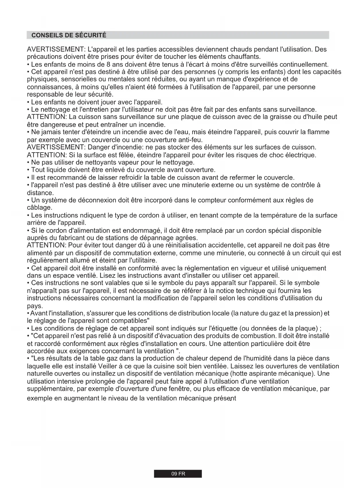 - "Les résultats de la table gaz dans la production de chaleur depend de l'humidité dans la pièce dans laquelle elle est installé Veiller à ce que la cuisine soit bien ventilée. Laissez les ouvertures de ventilation naturelle ouvertes ou installez un dispositif de ventilation mécanique (hotte aspirante mécanique). Une utilisation intensive prolongée de l'appareil peut faire appel à l'utilsation d'une ventilation supplémentaire, par exemple d'ouverture d'une fenêtre, ou plus efficace de ventilation mécanique, par exemple en augmentant le niveau de la ventilation mécanique présent