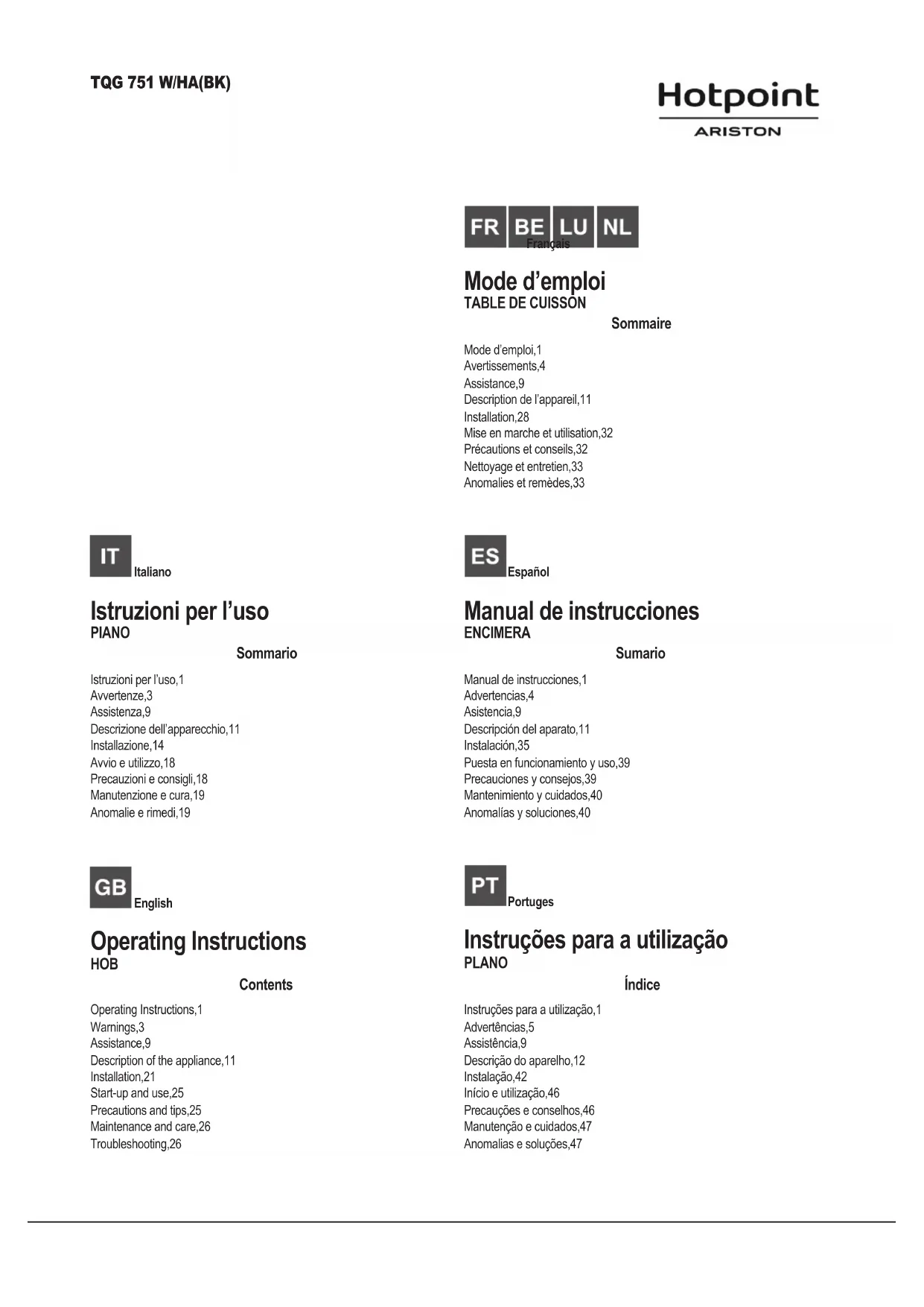 MODE D'EMPLOI TQG 751 WHA(BK) HOTPOINT ARISTON