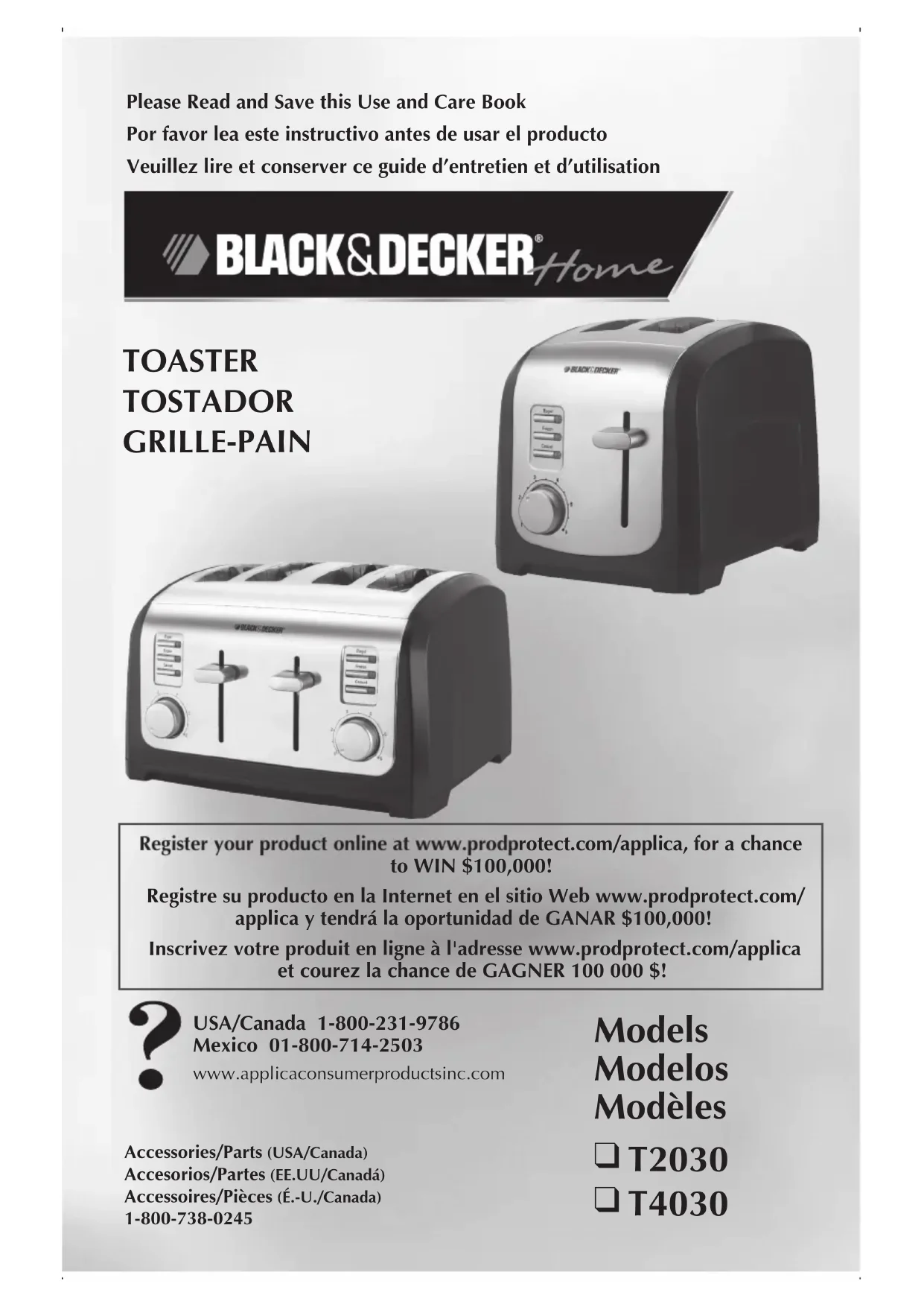 T2030 - Grille-pain BLACK & DECKER - Notice d'utilisation et mode d'emploi gratuit