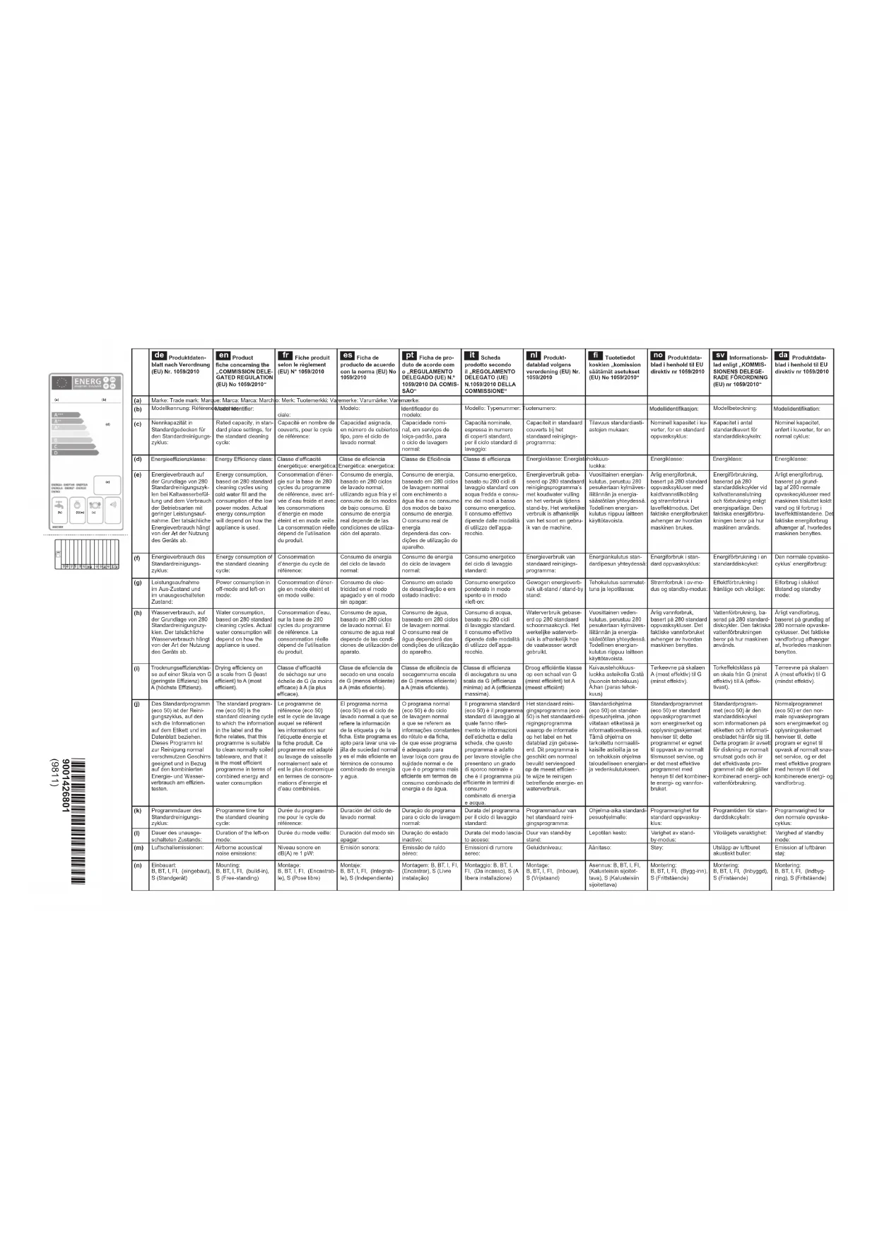 | Caractéristiques techniques | Lave-vaisselle encastrable, classe énergétique A++, capacité 12 couverts, niveau sonore 46 dB, 6 programmes de lavage, 4 températures de lavage. |