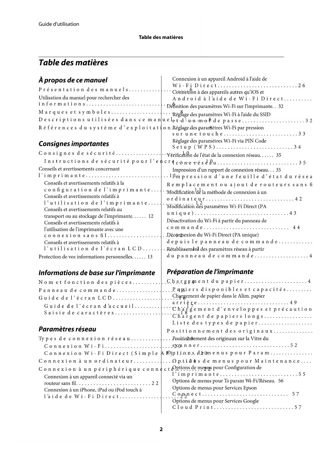 - Connexion Wi-Fi Direct (Simple AP) p. 20
