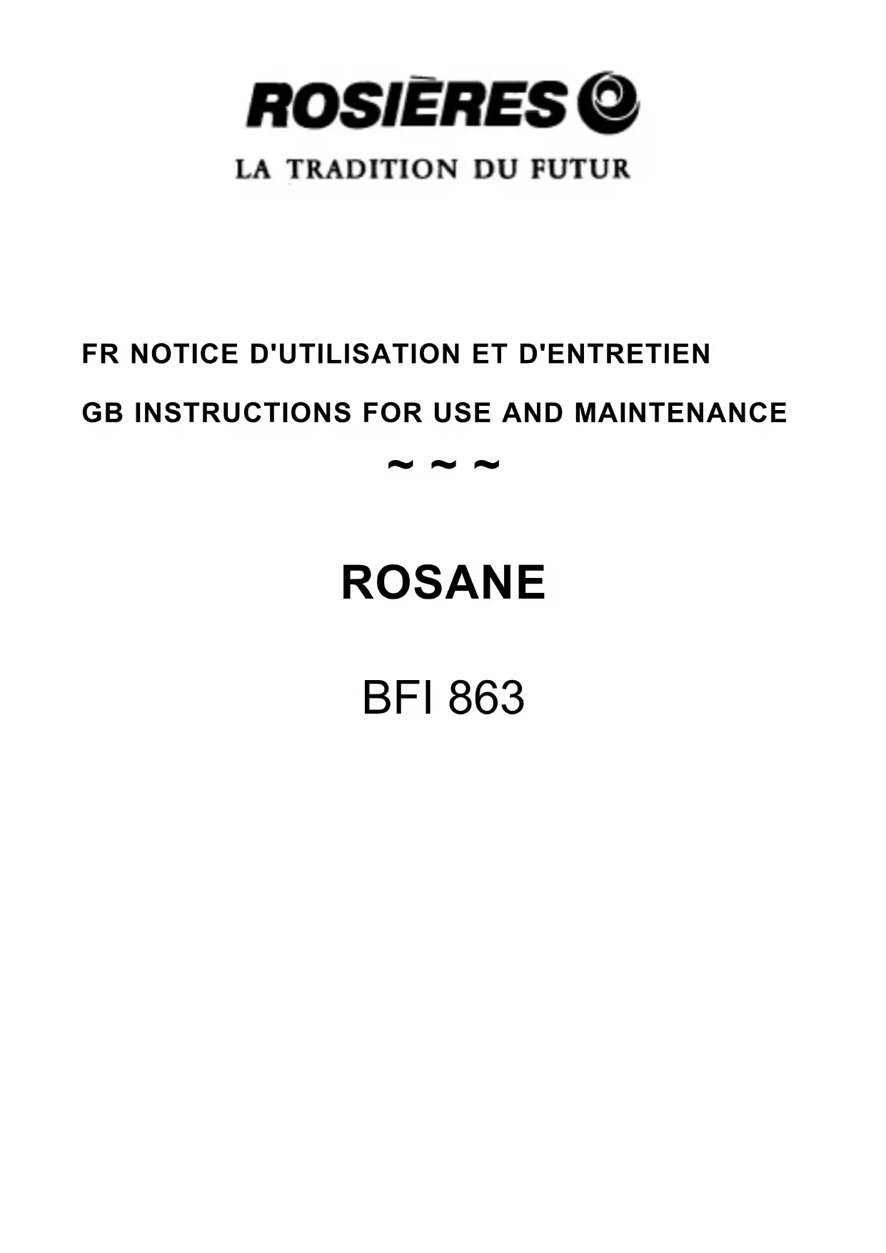 Retrouvez gratuitement la notice de l'appareil BFI 863 IN ROSIERES au format PDF.