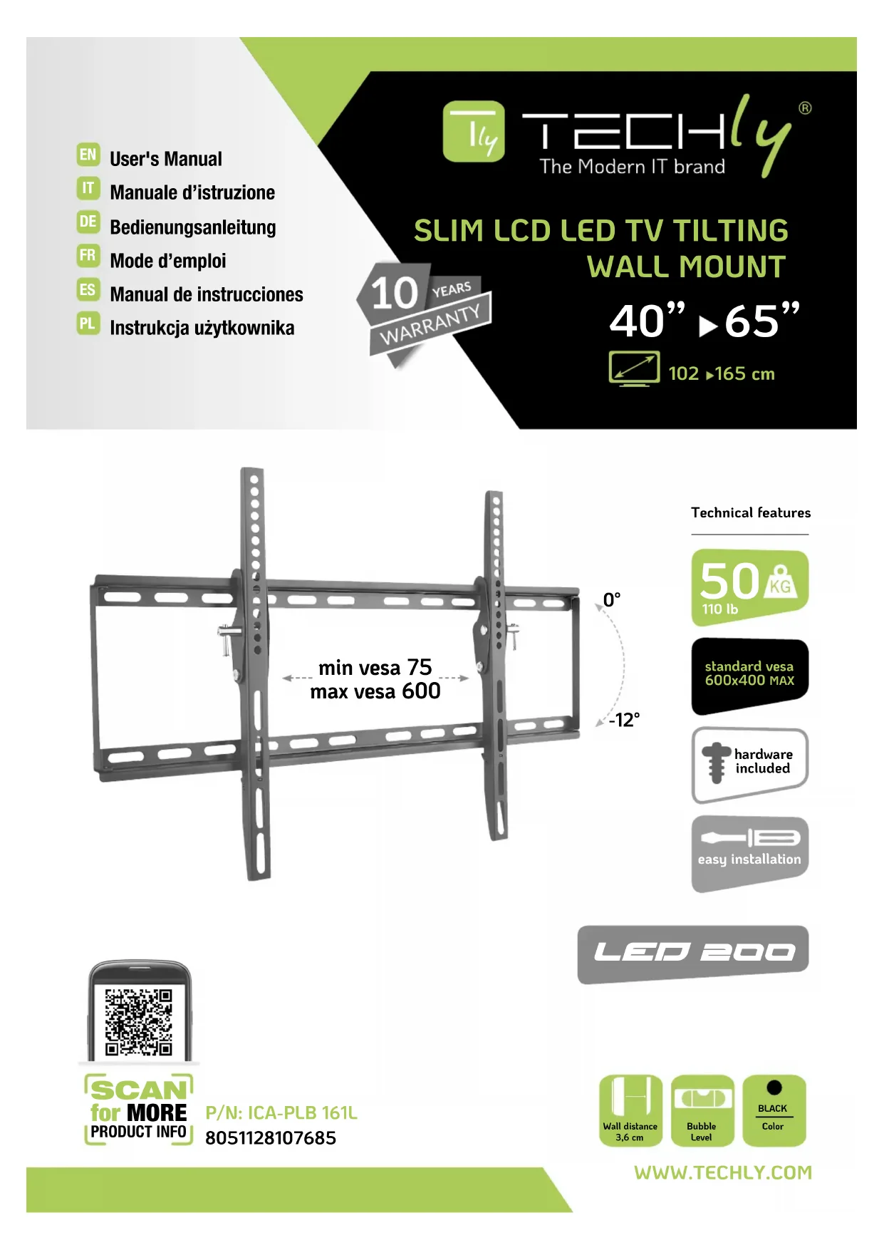 ICAPLB 161L - Support mural Techly - Notice d'utilisation et mode d'emploi gratuit