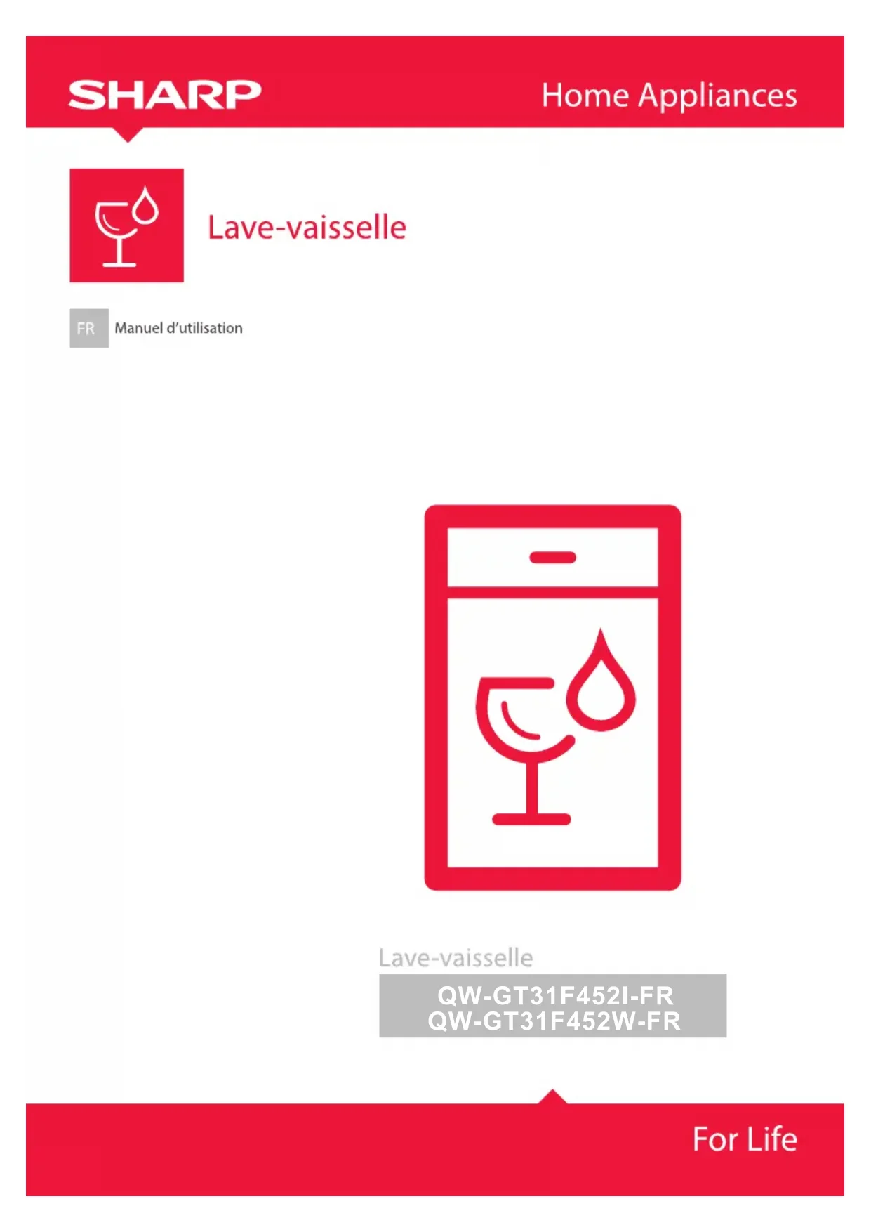 QWGT31F452WFR - Lave-vaisselle SHARP - Notice d'utilisation et mode d'emploi gratuit