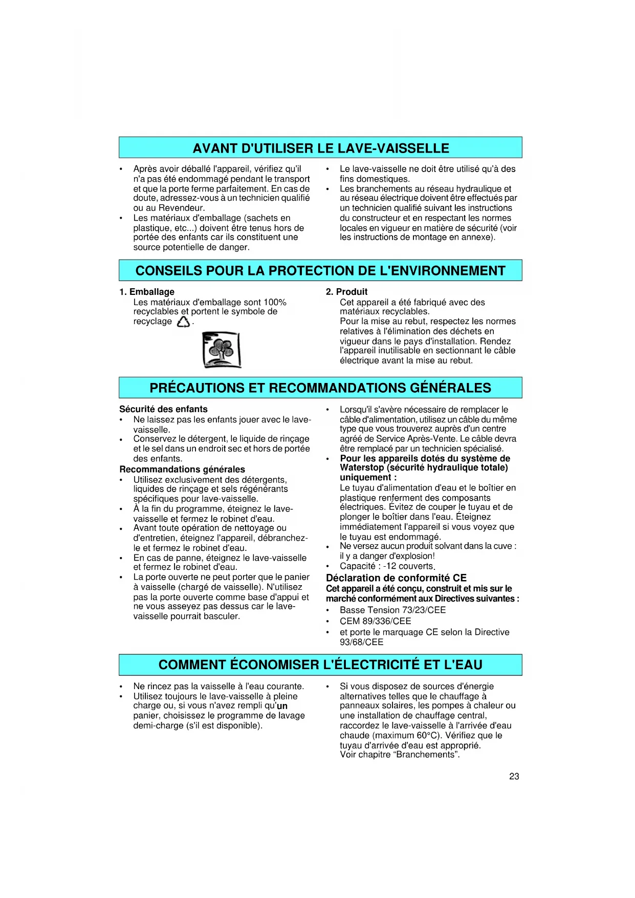 Pour obtenir entière satisfaction de votre lave-vaisselle, nous vous recommandons de lire attentivement le mode d'emploi et de consulter le tableau des programmes de lavage.23